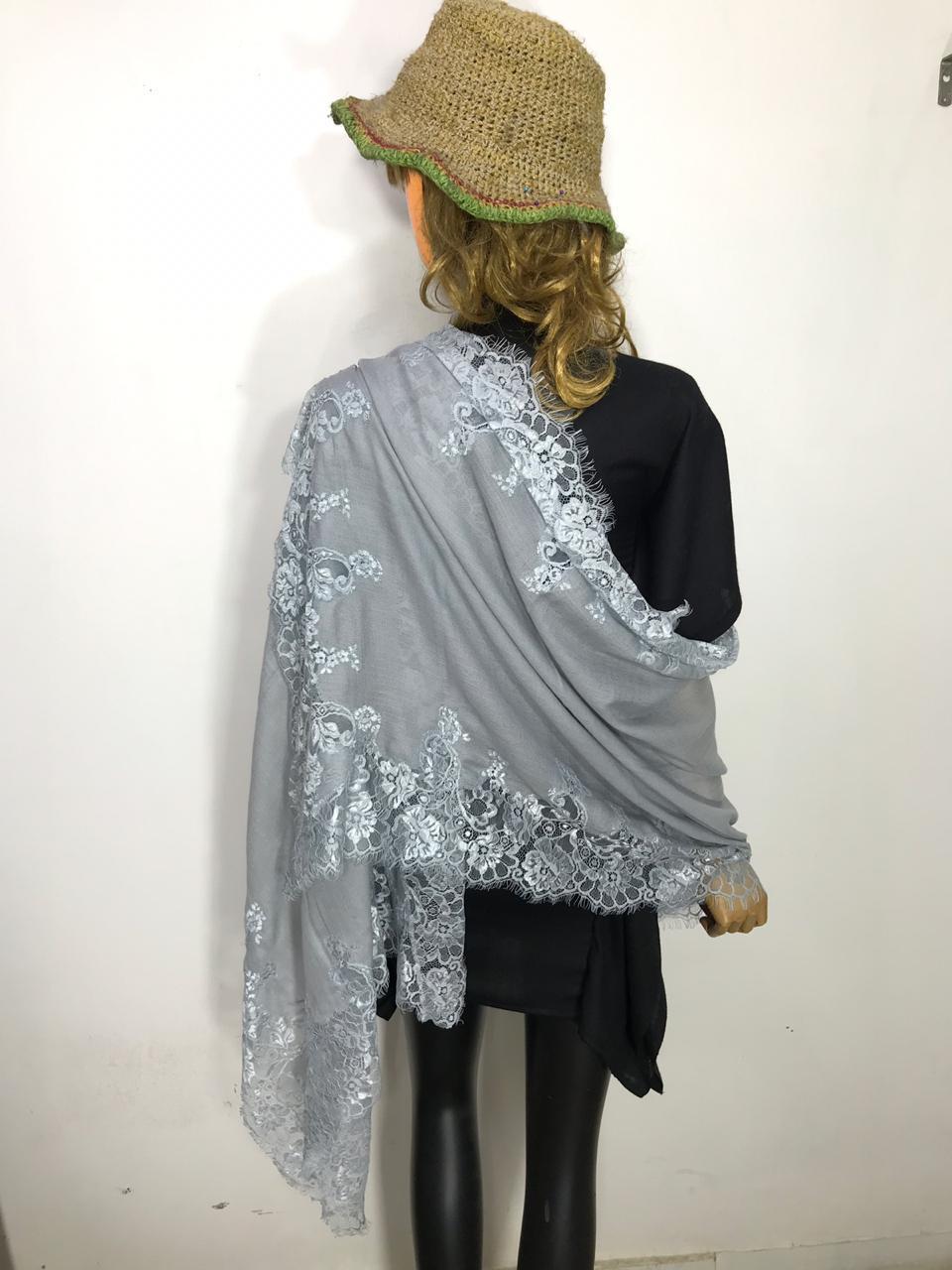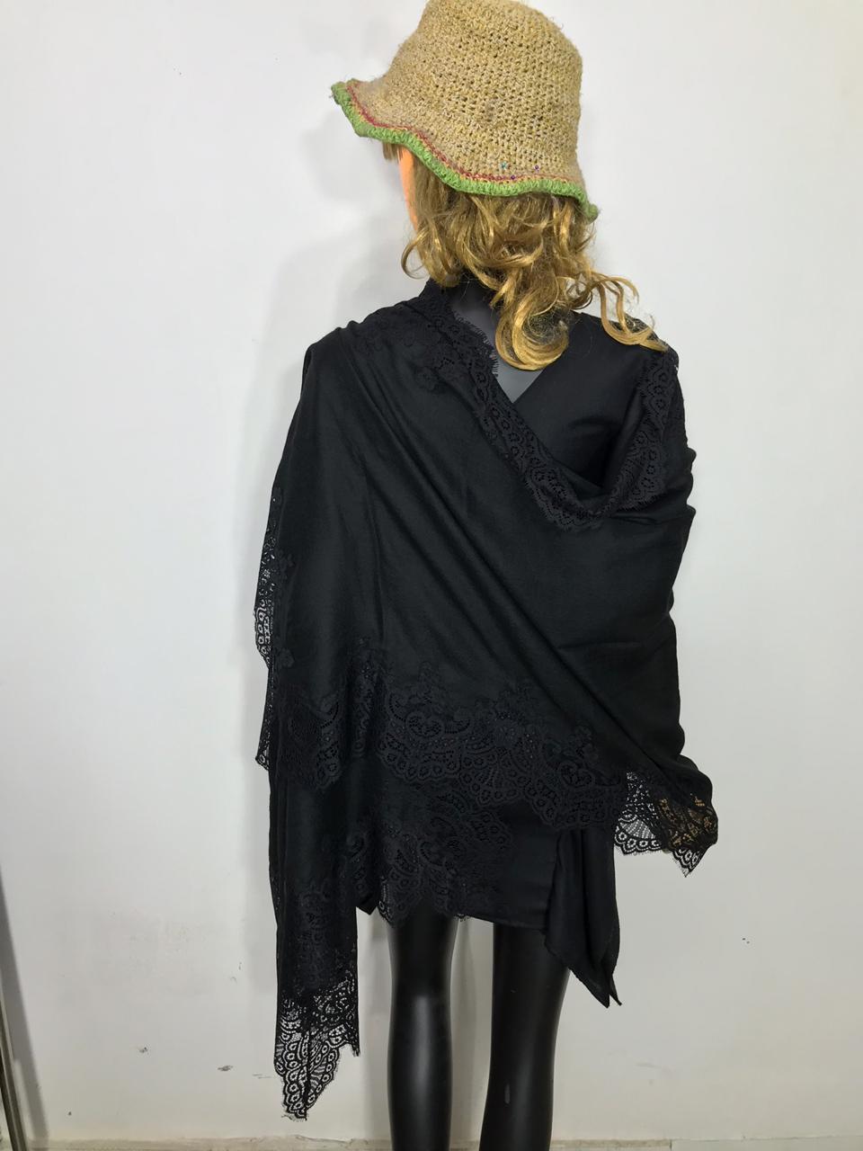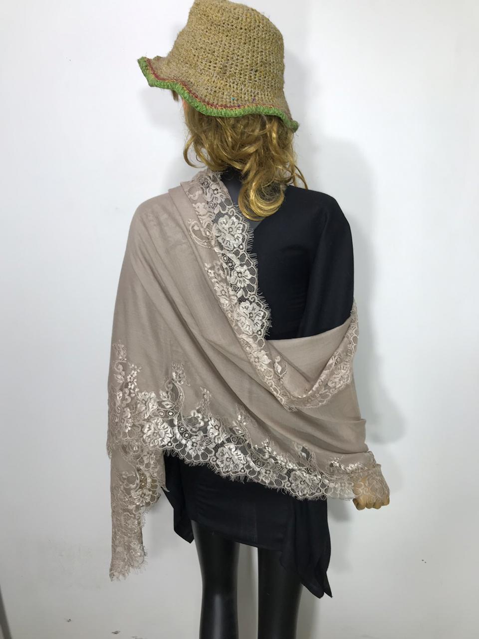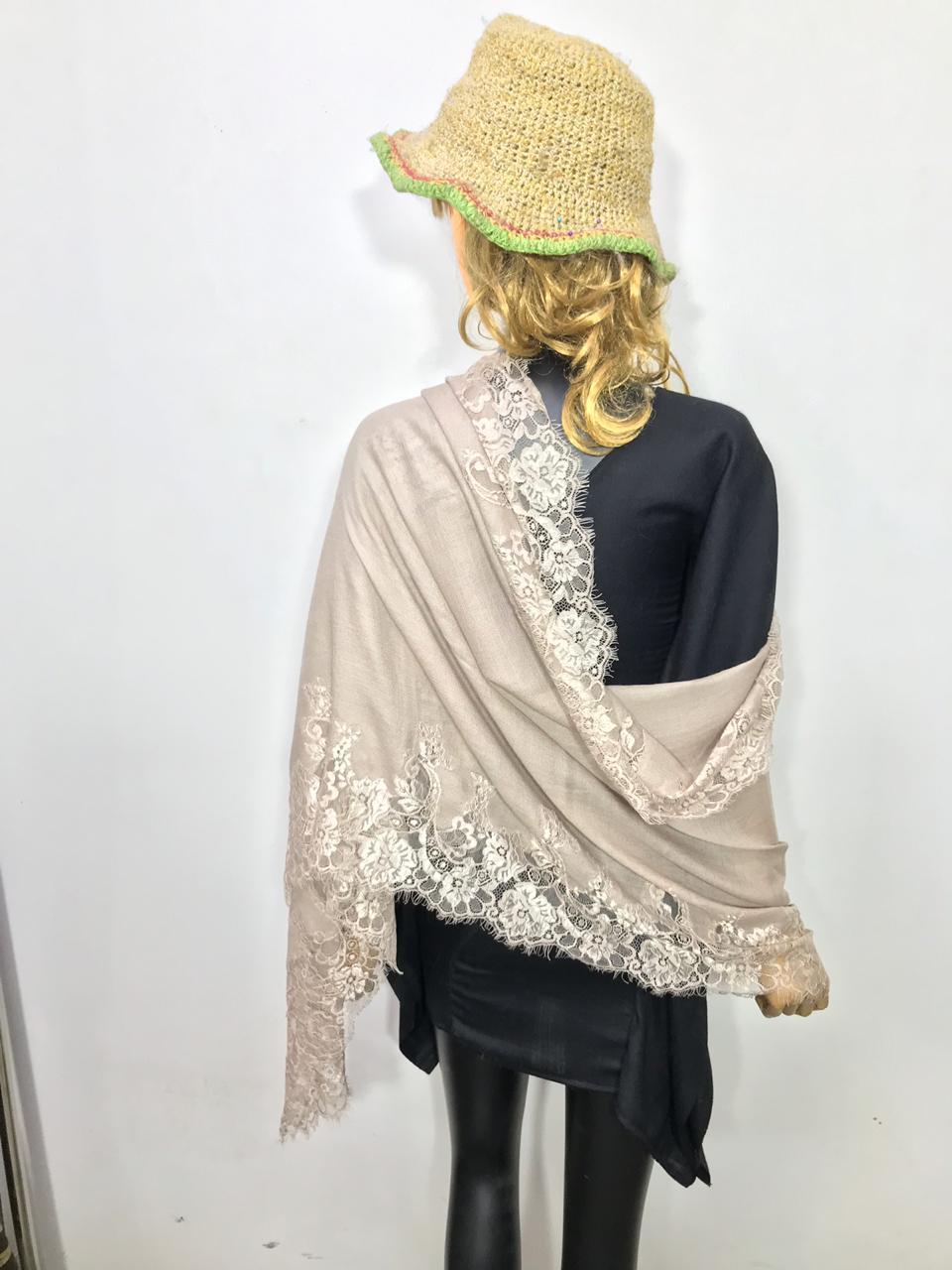 पश्मीना फ्रेंच लेस शॉल, साइज़-90x220cm