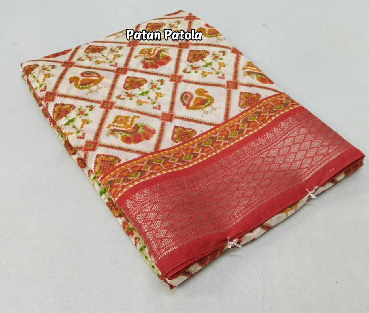 पटोला सिल्क क्रिस्टल सॉफ्ट कॉटन जरी बॉर्डर के साथ