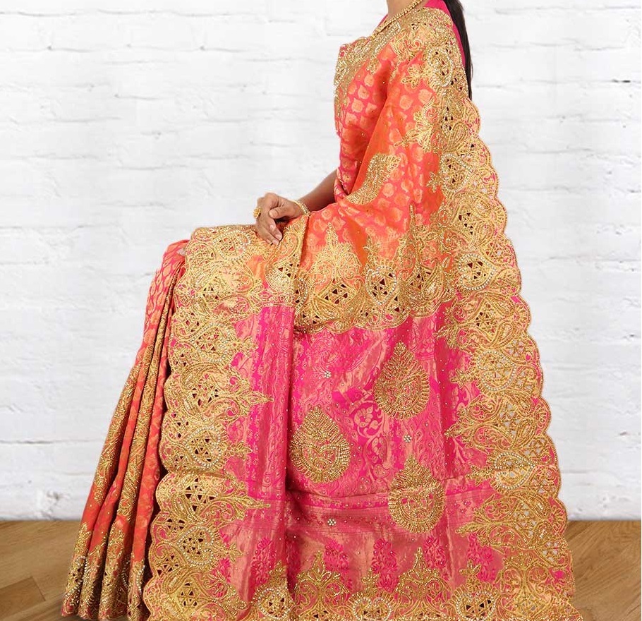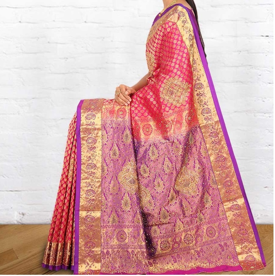 समर पिंक (गुलाबी) और पर्पल (बैंगनी) जॉर्जेट पार्टी वियर साड़ी