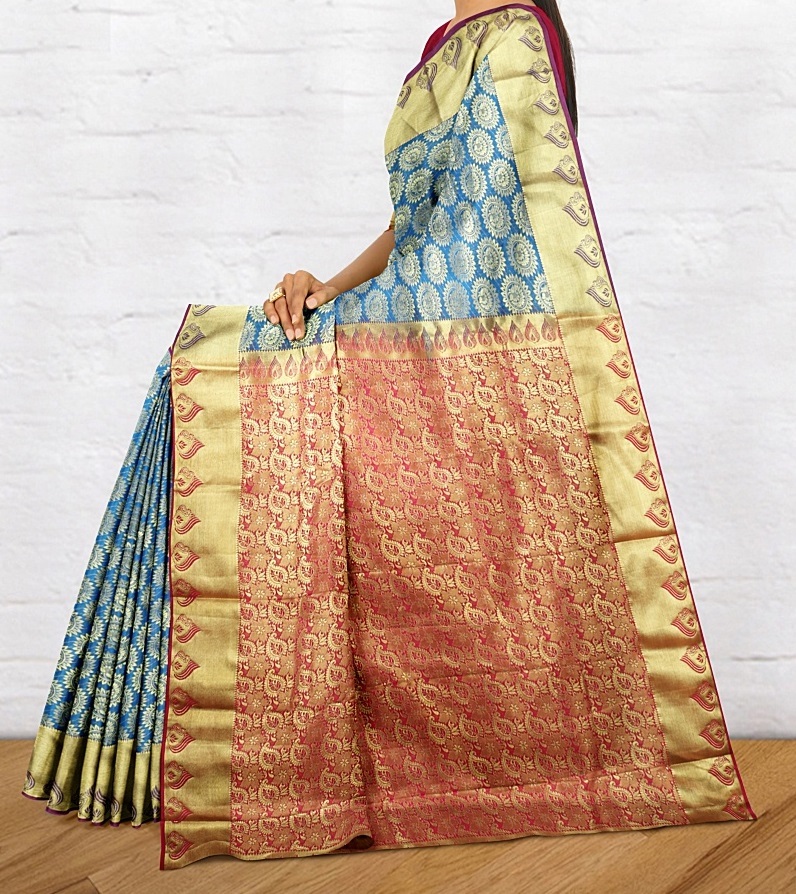नीली और गुलाबी मनीषा रॉकस्टार डिजाइनर साड़ियां
