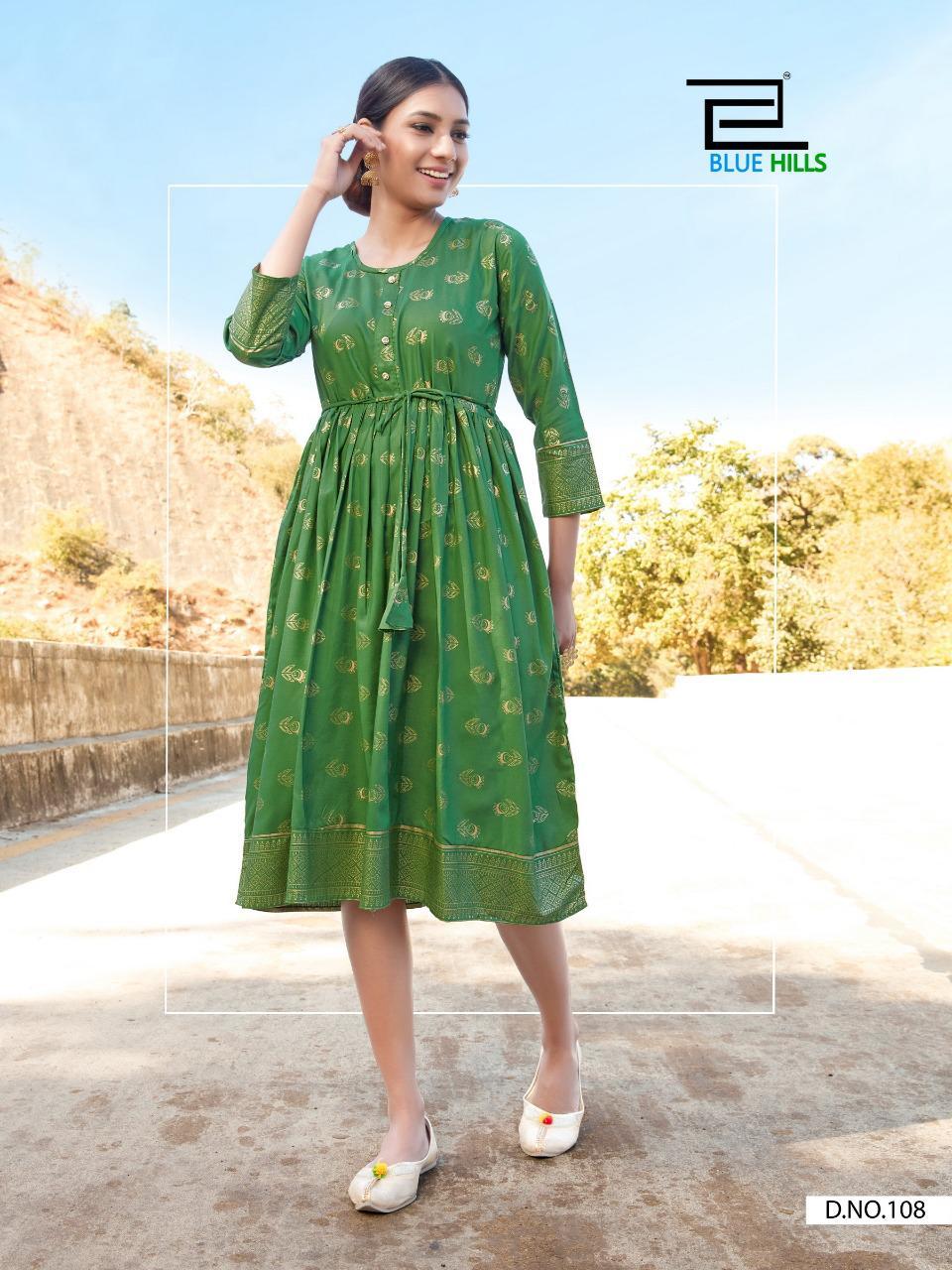 Explore in english - Payal Vol 1 Fancy Rayon 14kg Gold Print Anarkali Type Kurtis