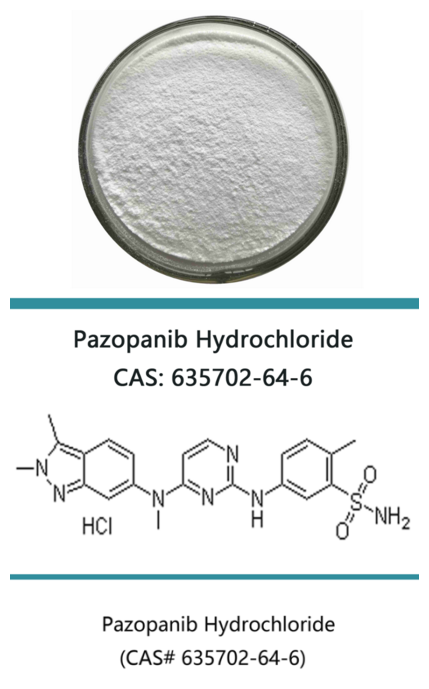 पाज़ोपानिब हाइड्रोक्लोराइड/पाज़ोपानिब एचसीएल/यूएनआई-33y9anm545 कैस 635702-64-6 रासायनिक नाम: 5- [[4- [(2