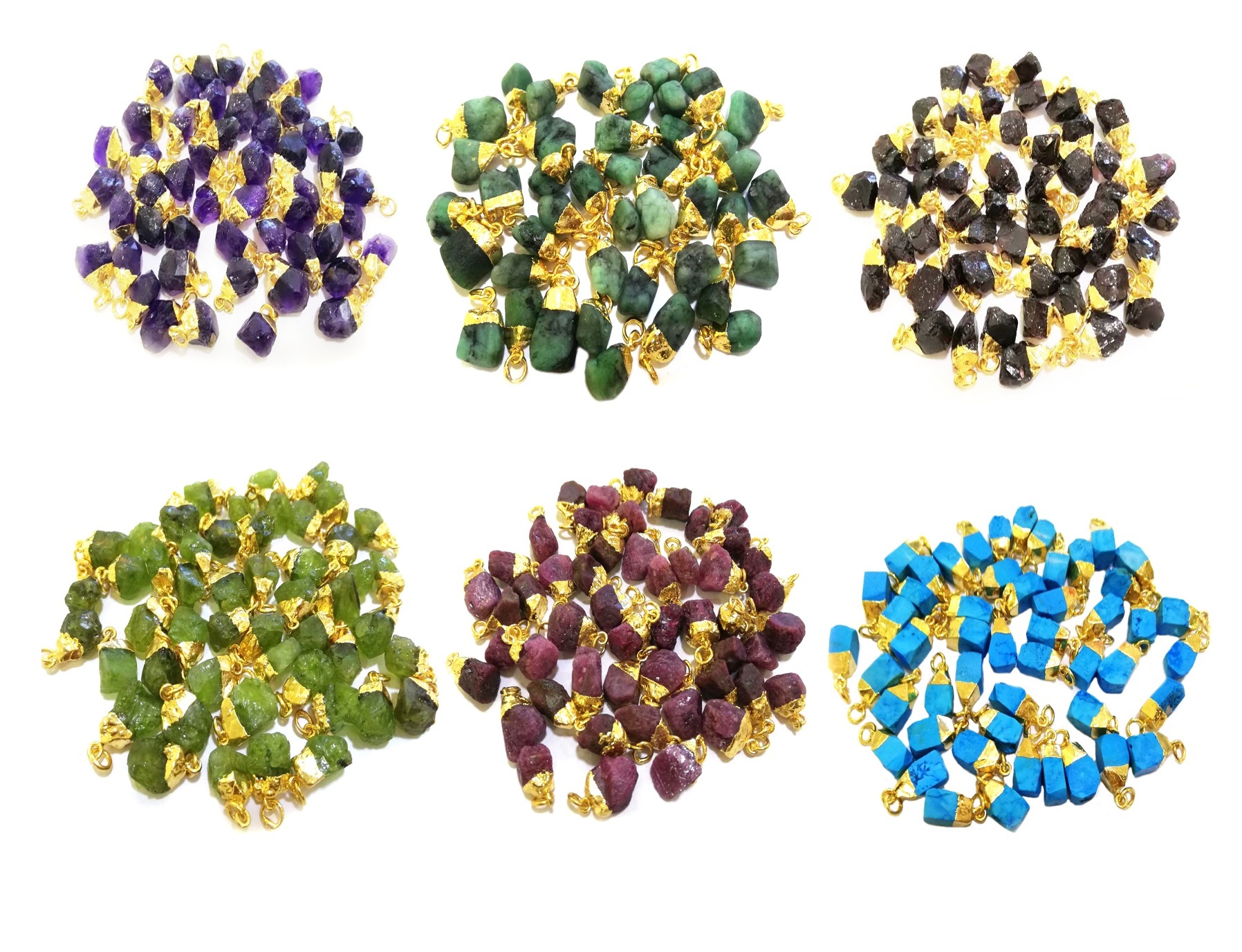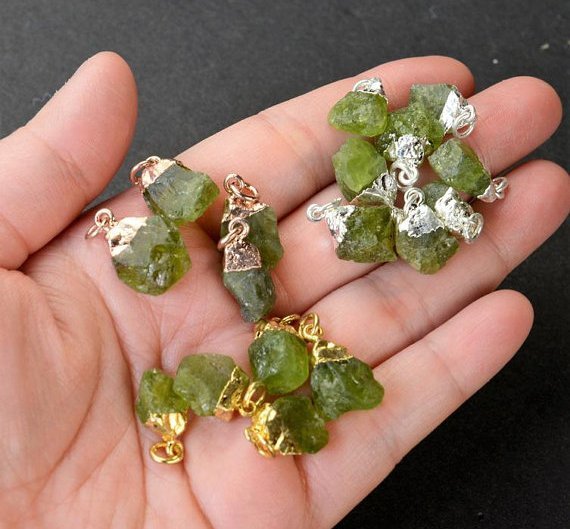 पेरिडॉट गोल्ड इलेक्ट्रोप्लेटेड कैप रफ जेमस्टोन पेंडेंट साइज़: 10-14mm