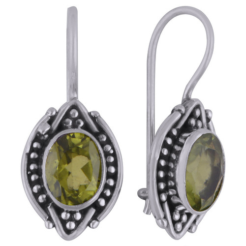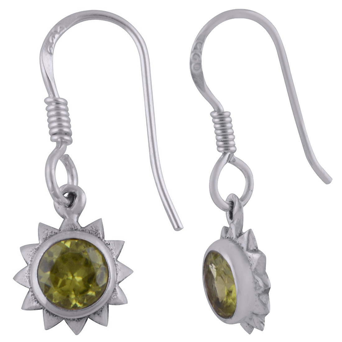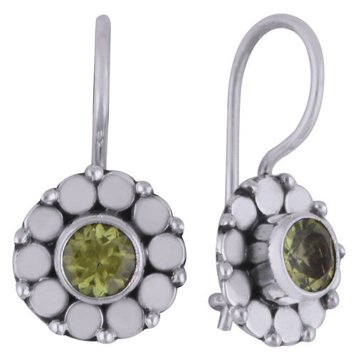 Explore in english - Peridot Natural Gemstone 925 Sterling Solid Silver Round Cut Stone Handmade Earrings
