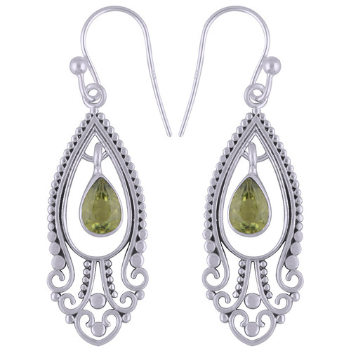 पेरिडॉट नेचुरल जेमस्टोन 925 स्टर्लिंग सॉलिड सिल्वर राउंड कट स्टोन हस्तनिर्मित झुमके का आकार: लंबाई: 23 मिमी X चौड़ाई: 8 मिमी