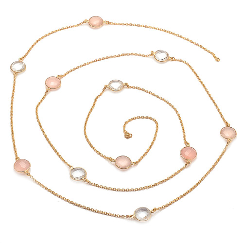 Explore in english - Pink Chalcedony & Crystal Quartz Gemstone Chain Necklace