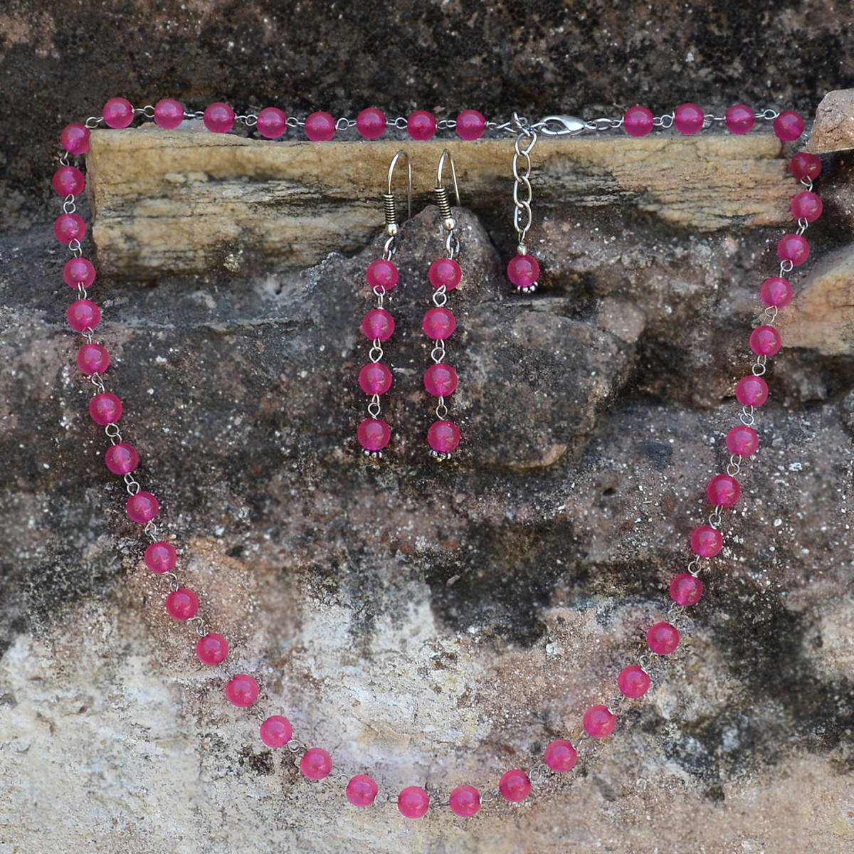 Explore in english - Pink Quartz Stone Silver Necklace Set PG-156672