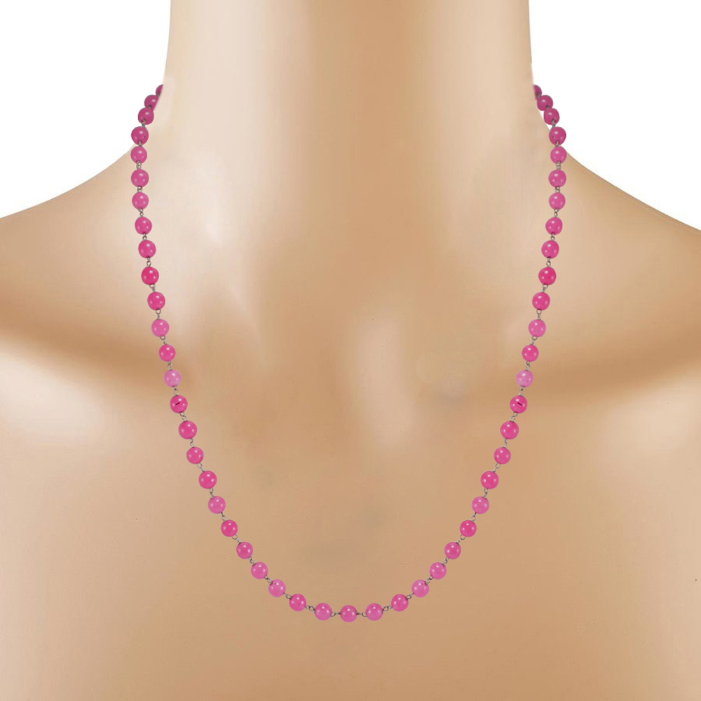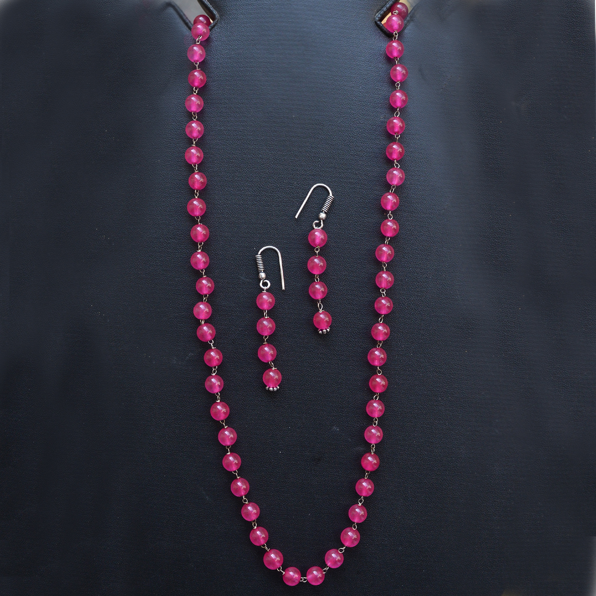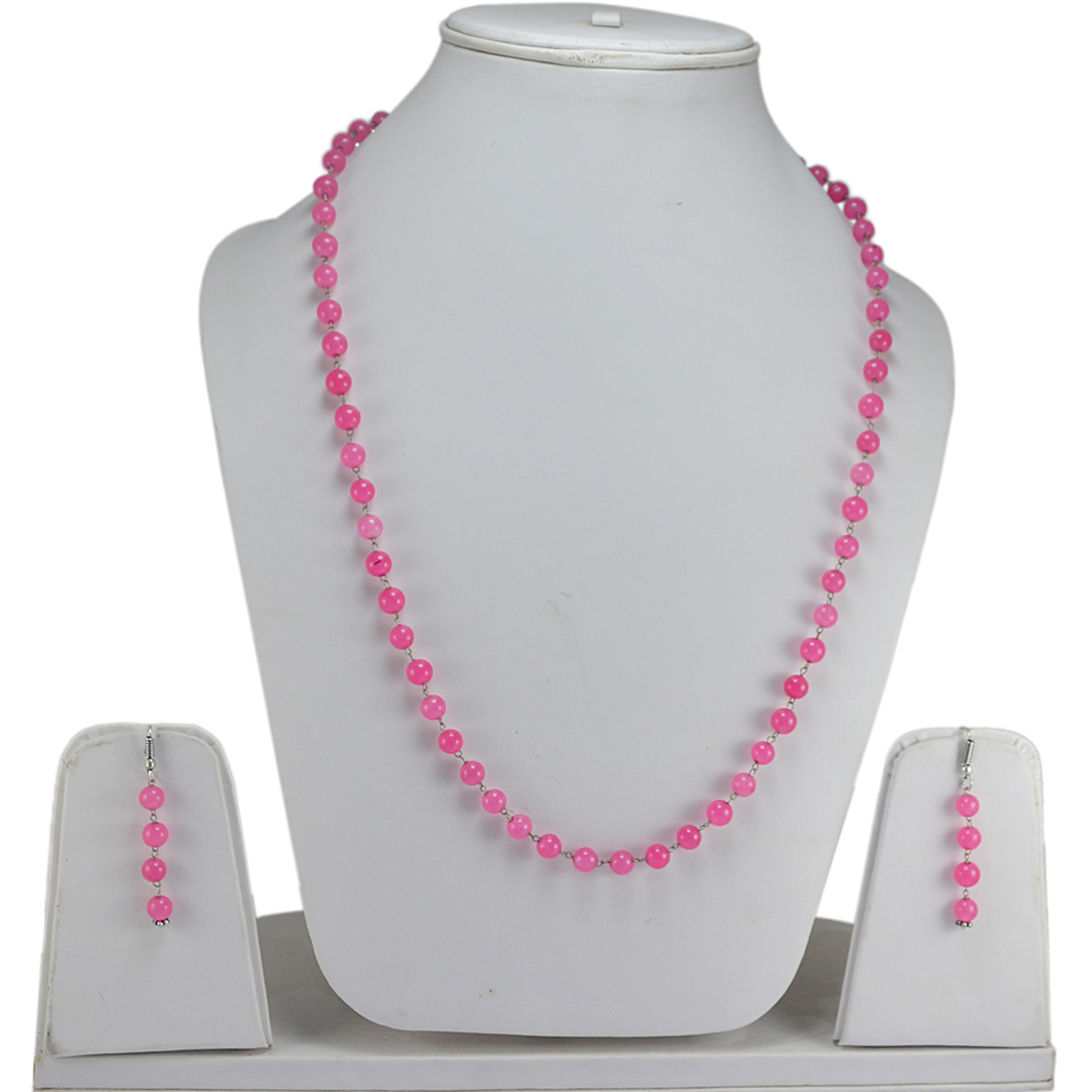 पिंक क्वार्ट्ज स्टोन सिल्वर नेकलेस सेट Pg-156672 आकार: 0.6x47 Cm.