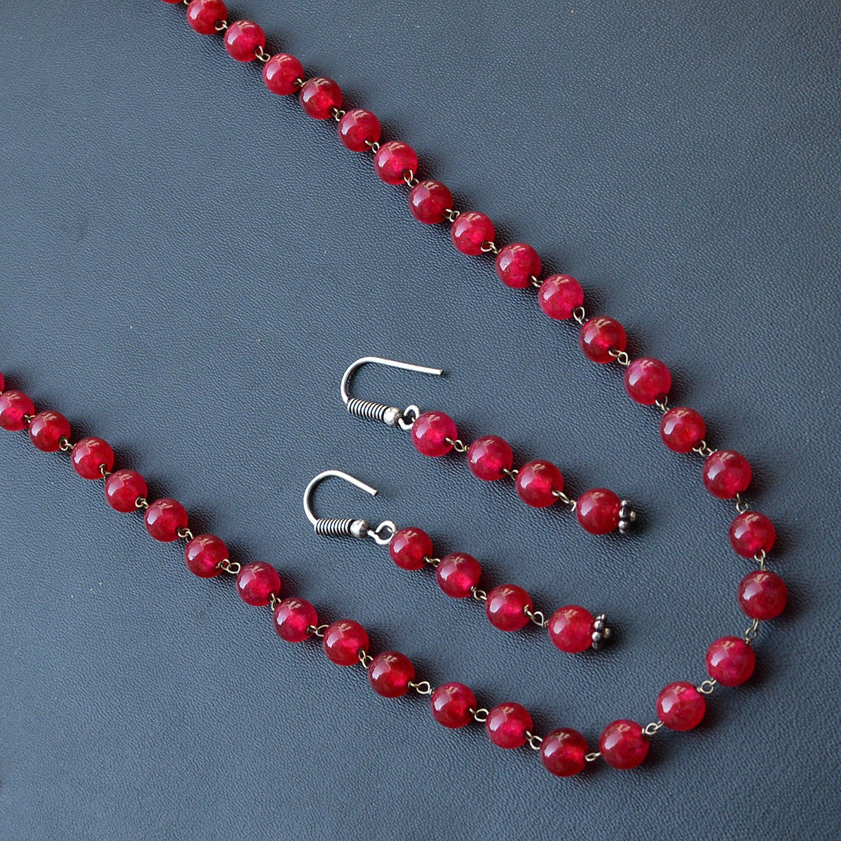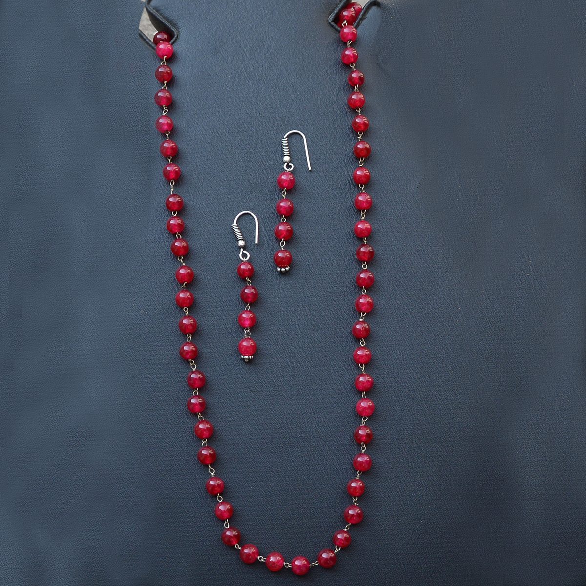 Explore in english - Pink Quartz Stone Silver Necklace Set PG-156695