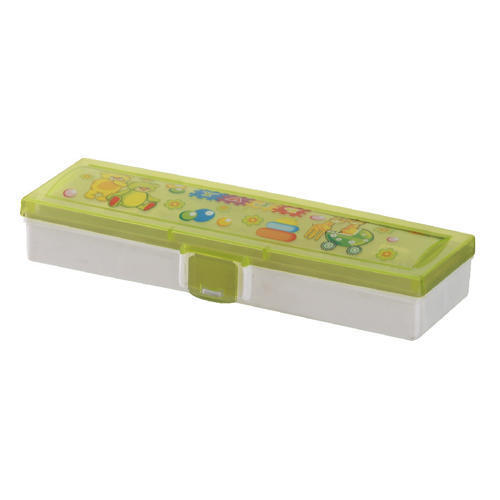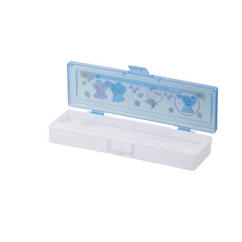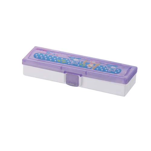 सफेद और गुलाबी प्लास्टिक पेंसिल बॉक्स