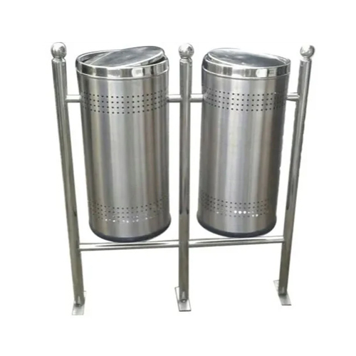 Explore in english - Pole Mounted Stainless Steel Twin Dustbin