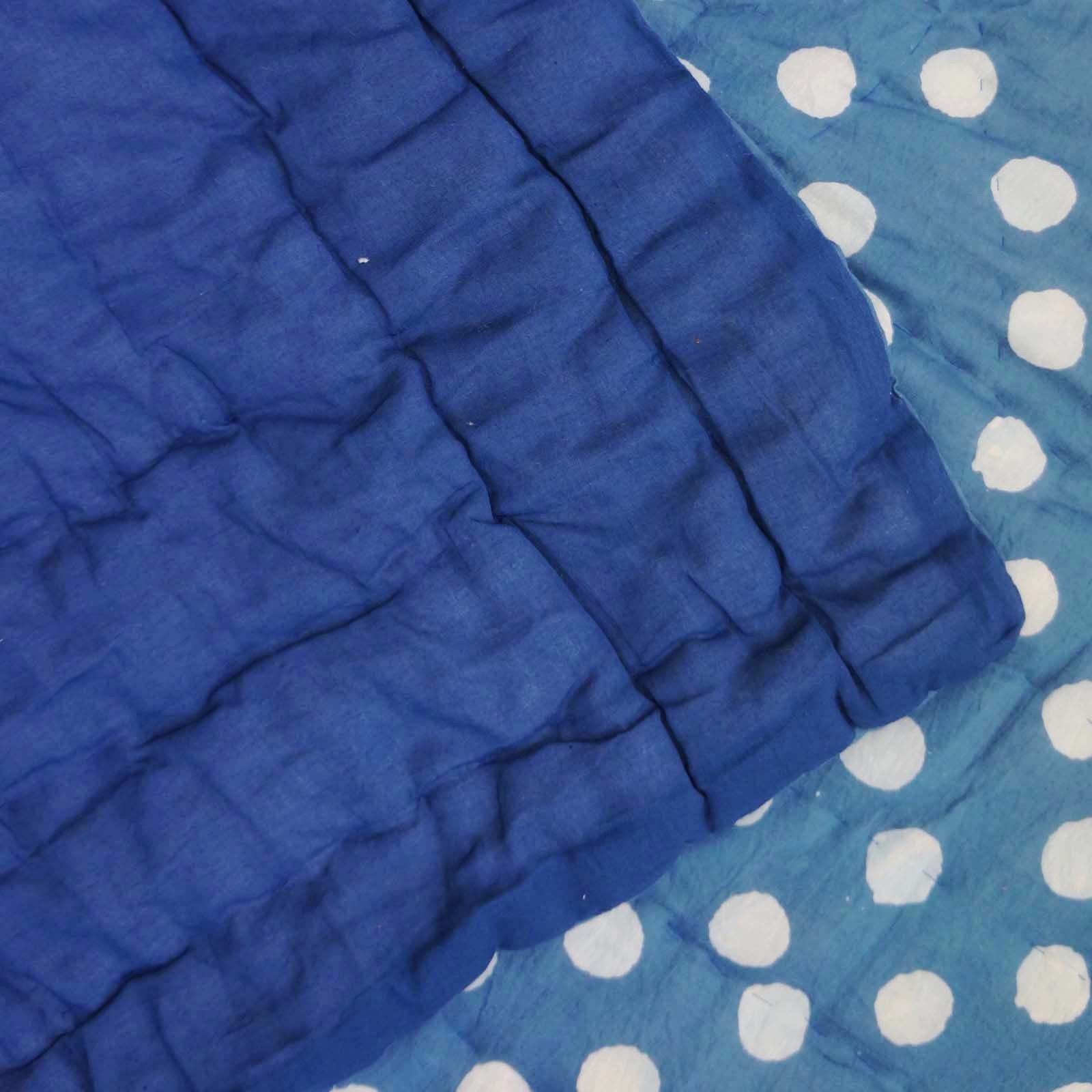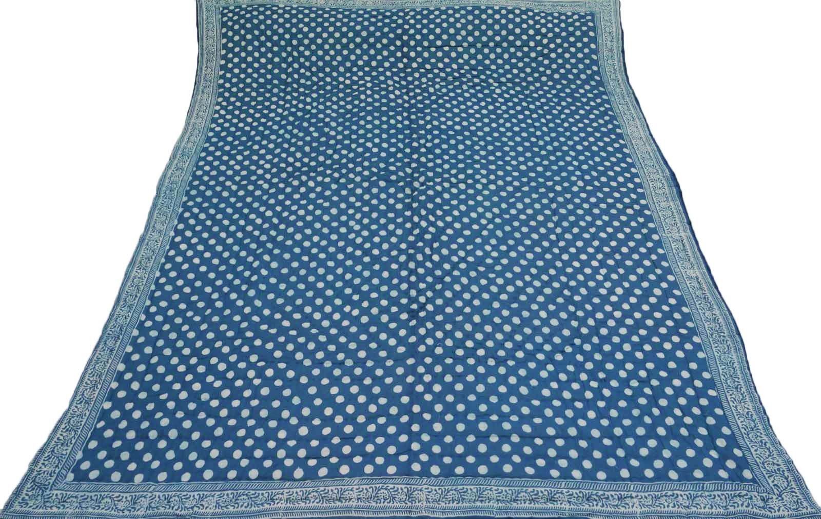 100% कॉटन पोल्का डॉट प्रिंटेड इंडिगो ब्लू जयपुरी रजाई