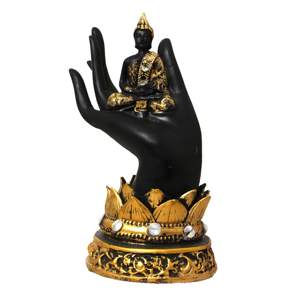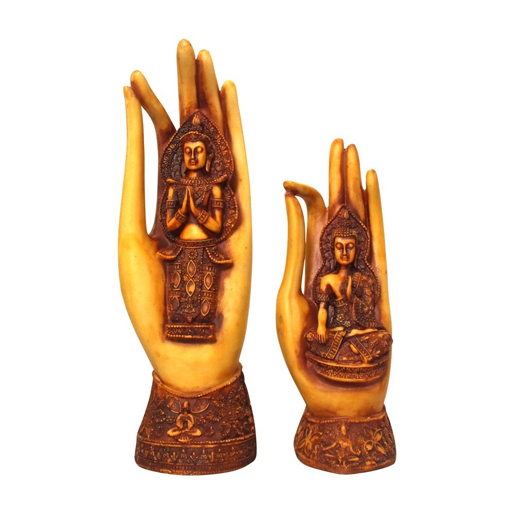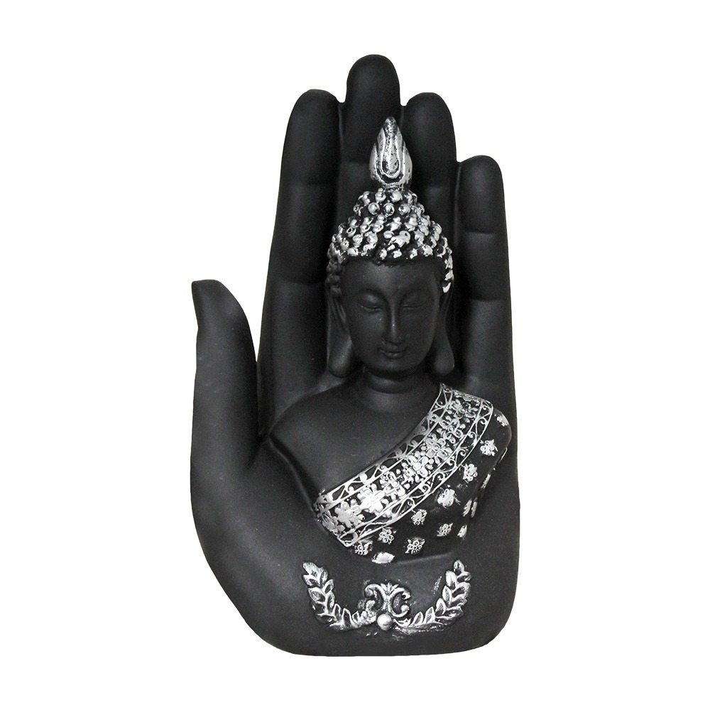 मल्टी कलर पॉलीरेसिन हैंड बुद्धा फिगरिन