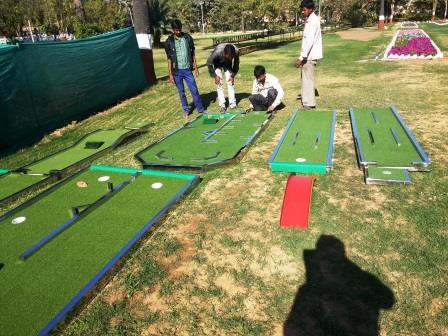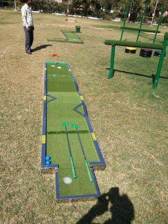 | एक्सेसरीज के प्रकार | Mini golf clubs, balls, scorecards, portable obstacles |