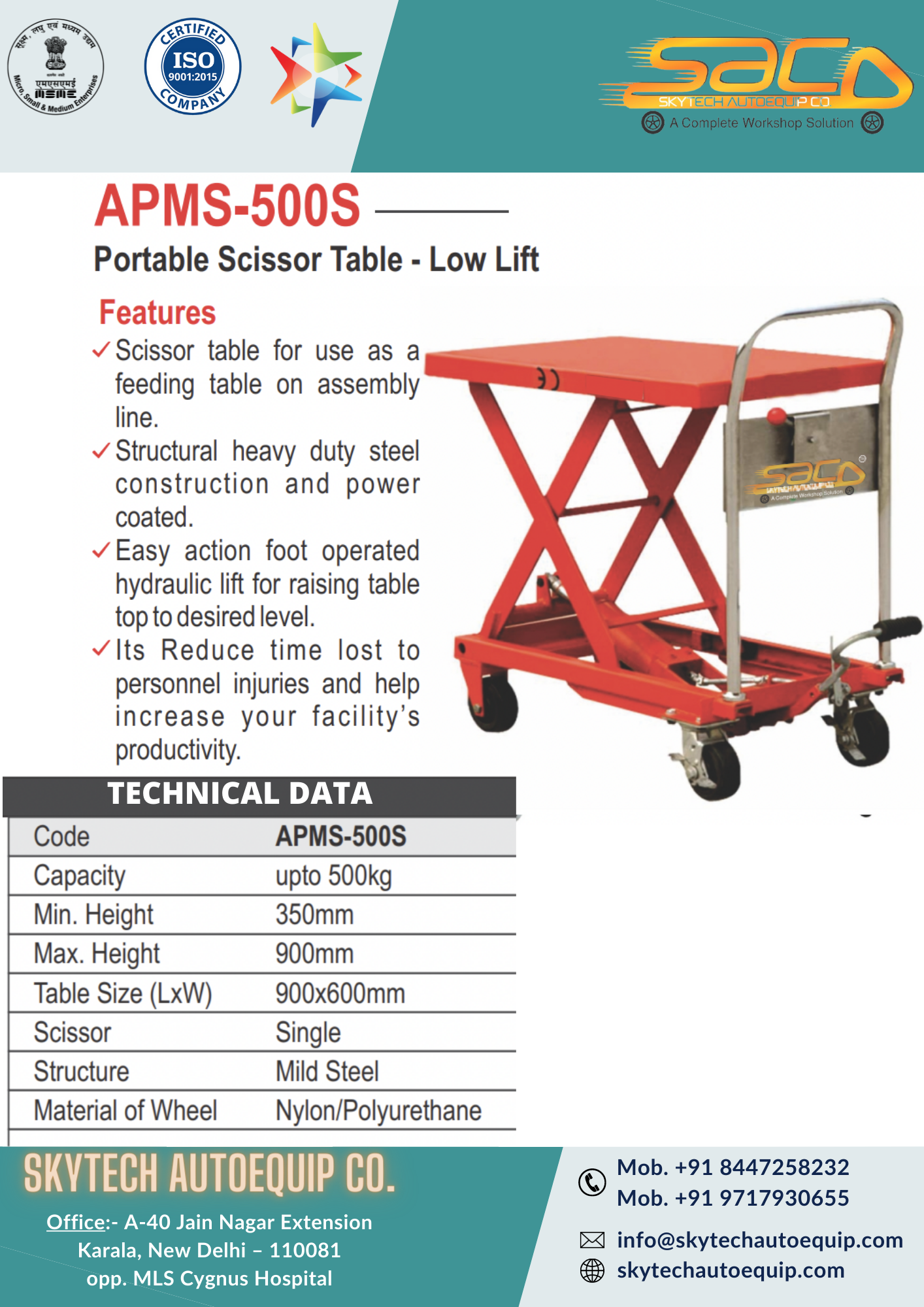पोर्टेबल कैंची टेबल - कम लिफ्ट उठाने की क्षमता: 500 किलोग्राम (किलो)