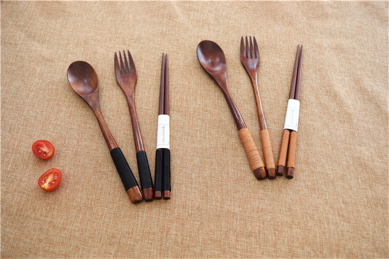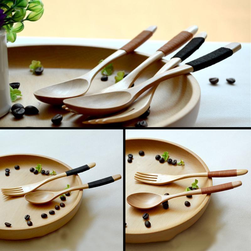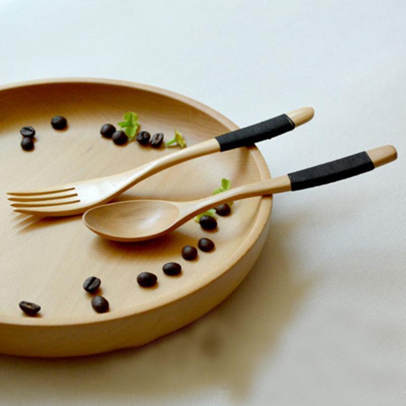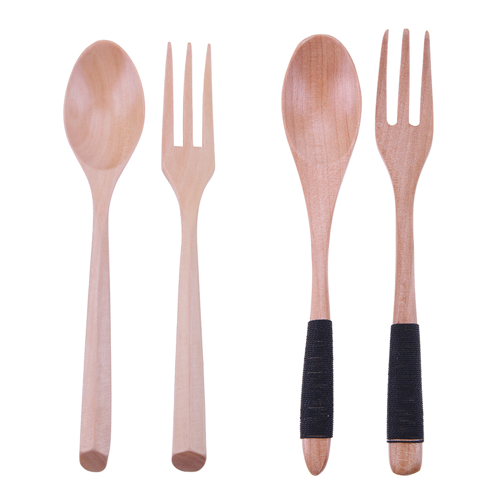 व्हाइट एंड ब्राउन पोर्टेबल टेबलवेयर वुडन कटलरी