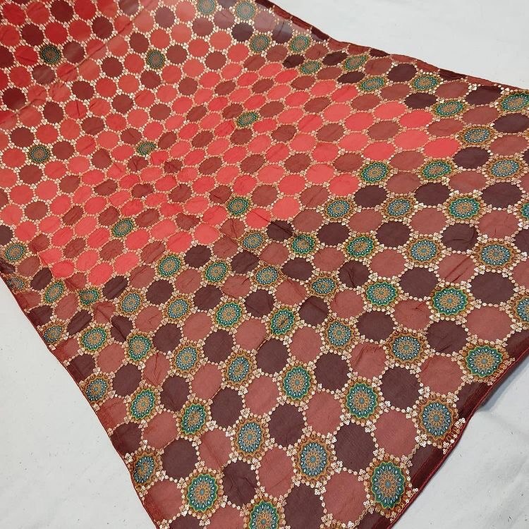 अलग-अलग रंगों के प्लेन जॉर्जेट फ़ैब्रिक में उपलब्ध