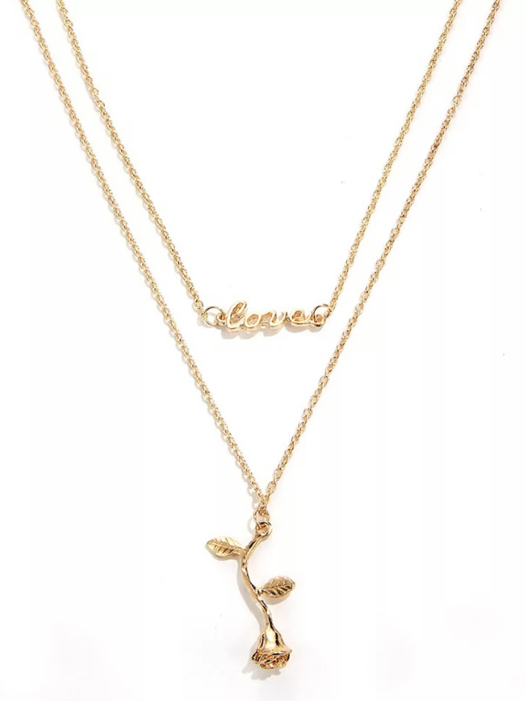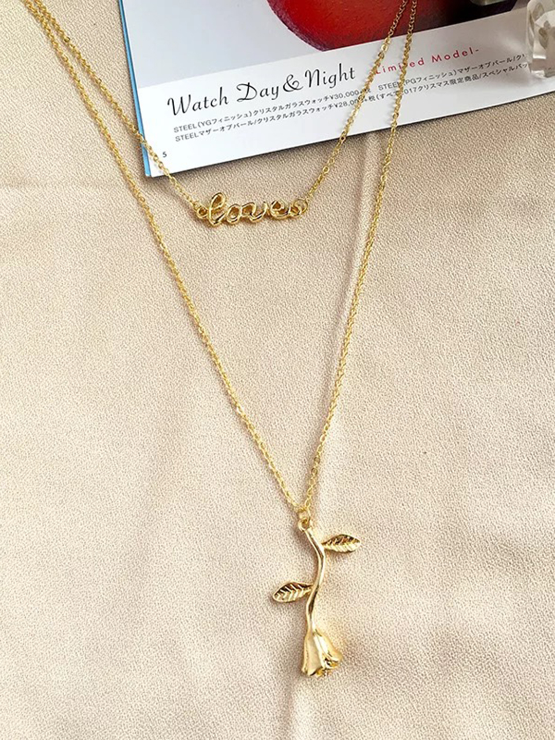 Explore in english - Gold Plated Double Layered Love and Rose Pendant Necklace