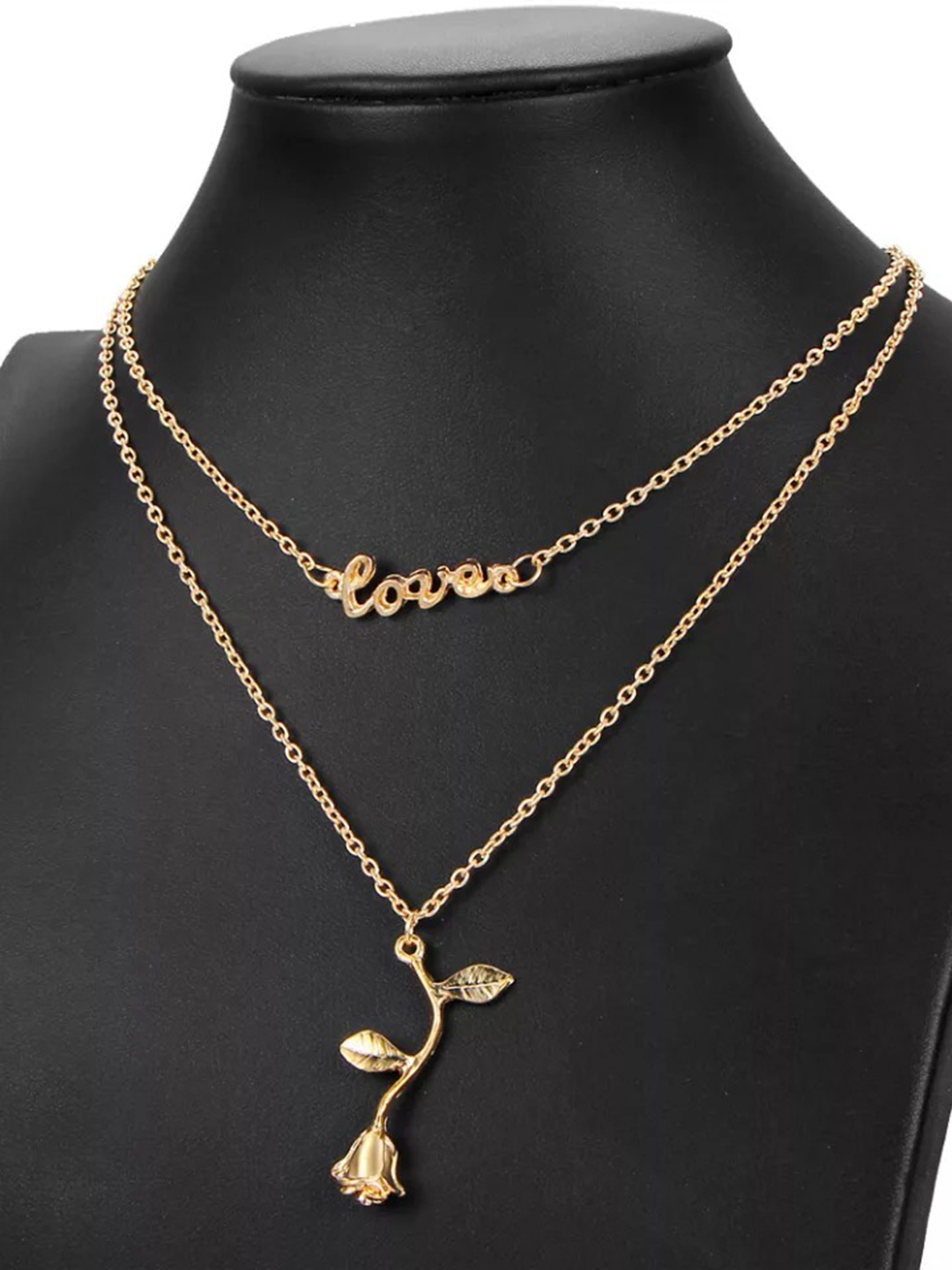 सुंदर गोल्ड प्लेटेड डबल लेयर्ड लव और रोज़ पेंडेंट नेकलेस जेंडर: महिलाएं