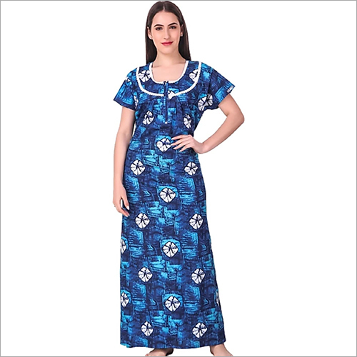 सांस लेने योग्य रेगुलर फिट त्वचा के अनुकूल हाफ स्लीव प्रिंटेड कॉटन लेडीज़ नाइटवियर नाइटी