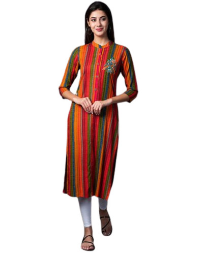 प्लास्टिक प्रिंटेड स्ट्रेट 3/4th स्लीव महिलाओं के लिए कैज़ुअल कॉटन कुर्ती पैंट सेट