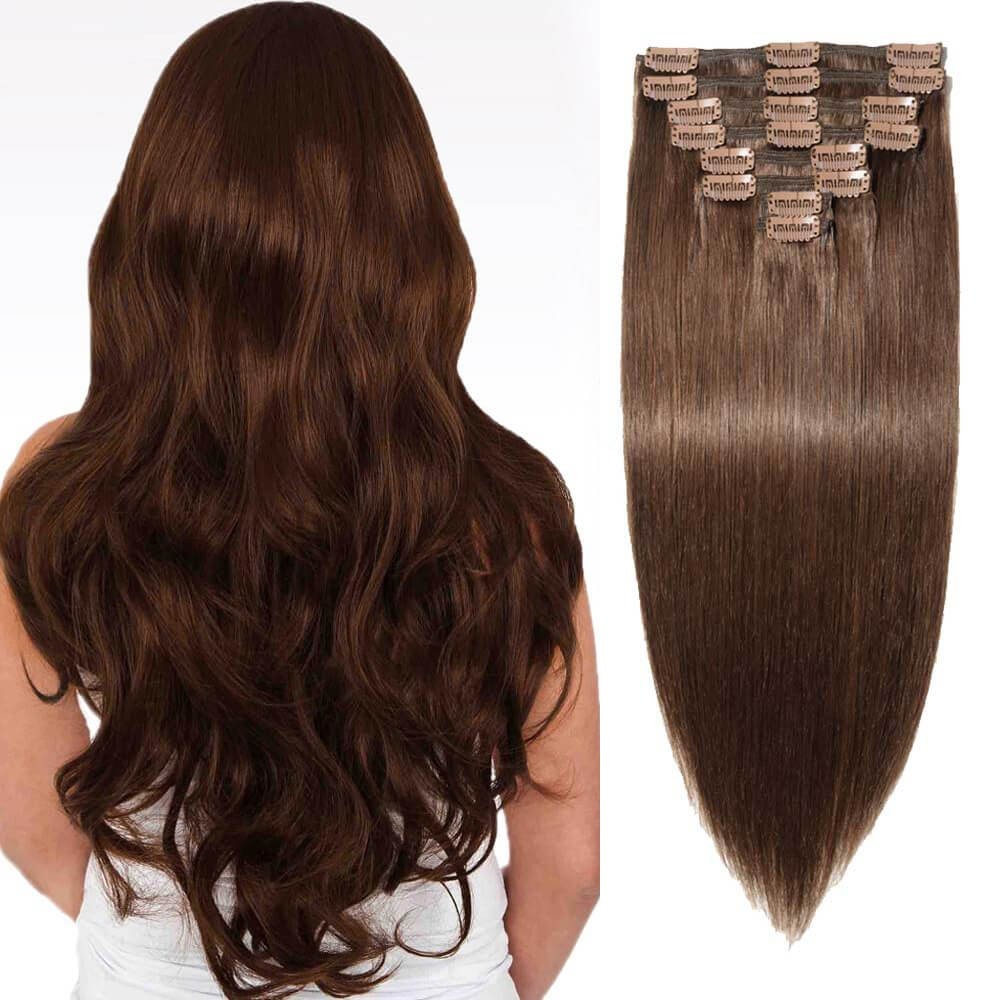 ह्यूमन हेयर वेट एक्सटेंशन्स में नेचुरल ब्राउन प्रोफेशनल स्टाइलिज्ड क्लिप