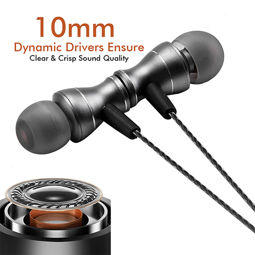 Ptron Magg मैग्नेटिक इन-ईयर स्टीरियो साउंड वायर्ड हेडफ़ोन माइक के साथ