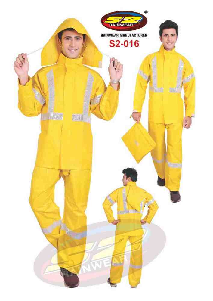 | स्टाइल | High visibility Reflective Tape on front and back for safety at night. Special inner Tapping along stitches for total rain protection. Jacket attached hood with drawstring closure. Chest fastened by premium grade virgin plastic zipper with Flap cover. Velcro fasteners at Sleeve Cuffs. Lightweight and Multi pocketed including A4 document pocket. Waist adjusted by elasticised waistband., |