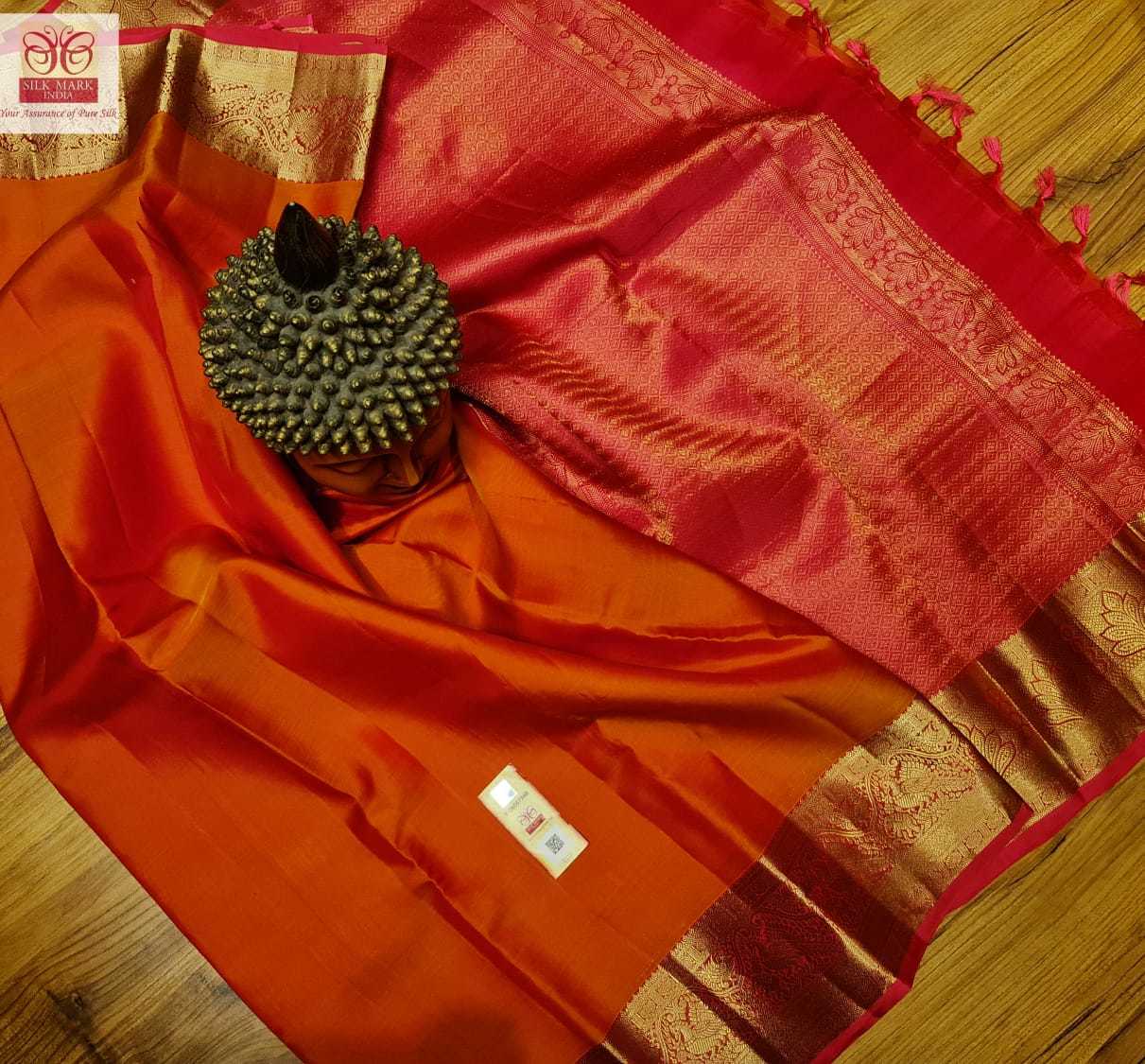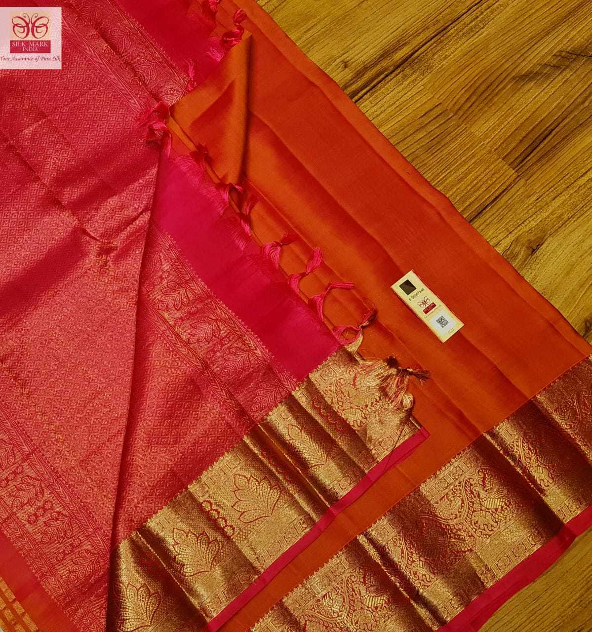 ऑरेंज विथ पिंक प्योर कांचीपुरम फैंसी सॉफ्ट सिल्क