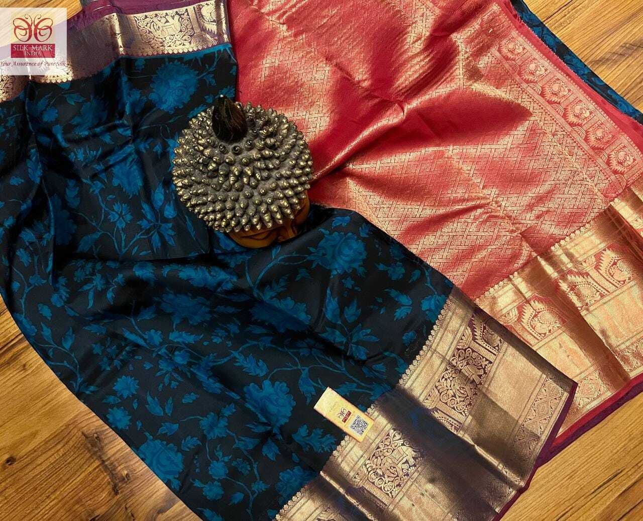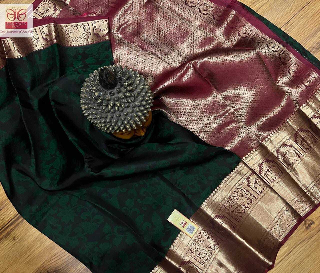 पिंक (गुलाबी) के साथ गहरे हरे और नीले रंग के साथ पिंक प्योर कांचीपुरम न्यू सिल्क साड़ी