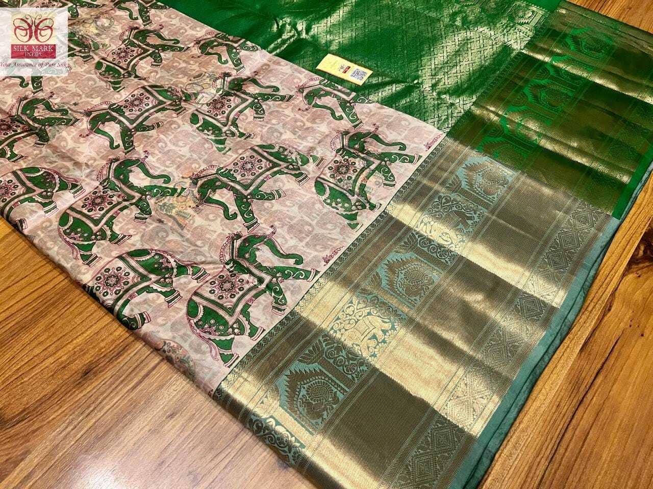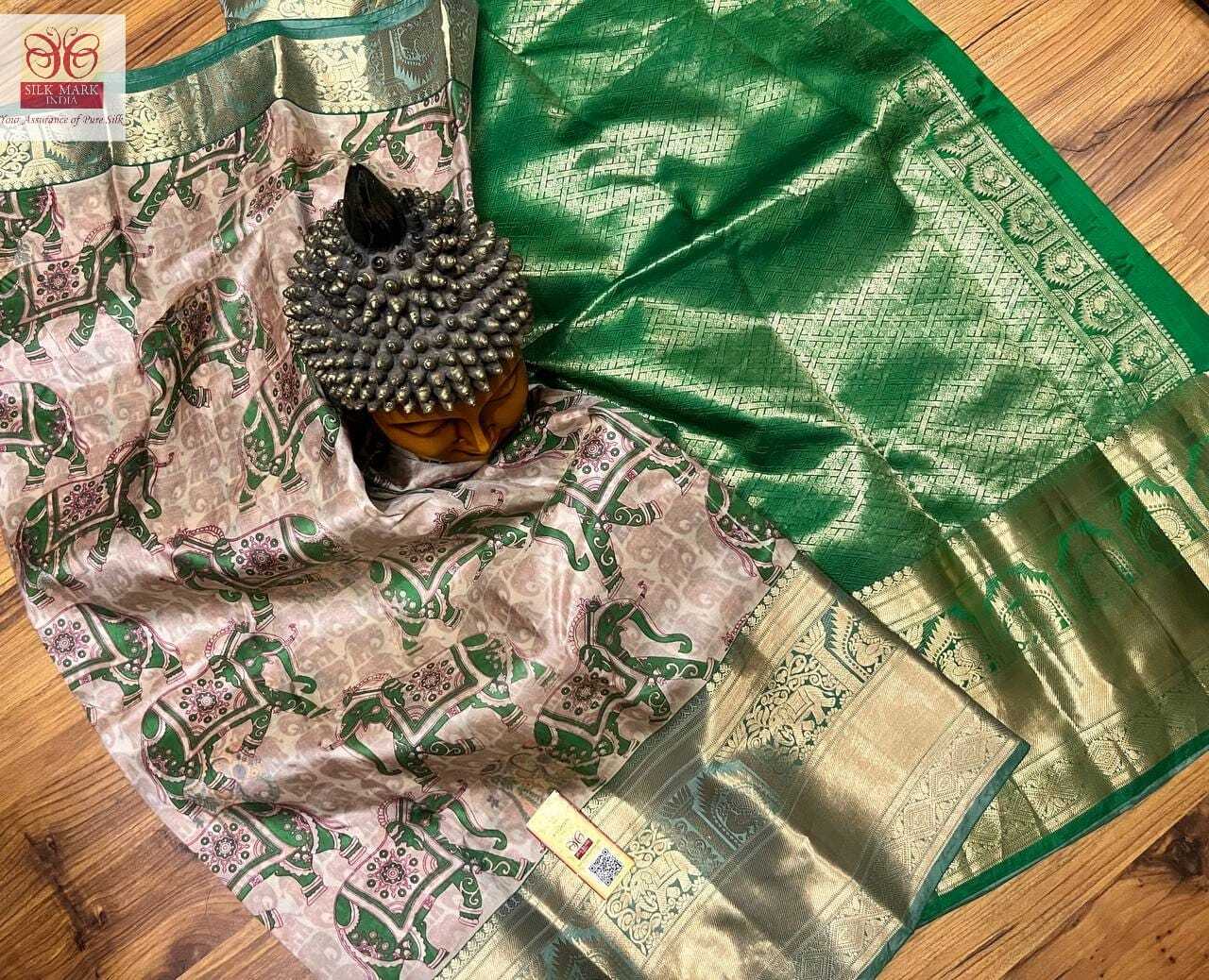 ग्रे हरे रंग की शुद्ध कांचीपुरम नई सॉफ्ट सिल्क साड़ी के साथ