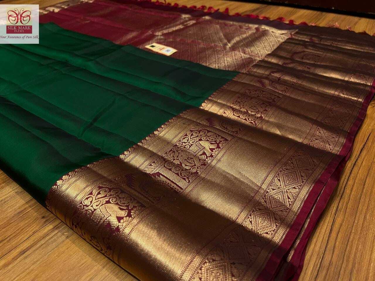 ग्रीन फैंसी बॉर्डर प्योर कांचीपुरम सिल्क साड़ी