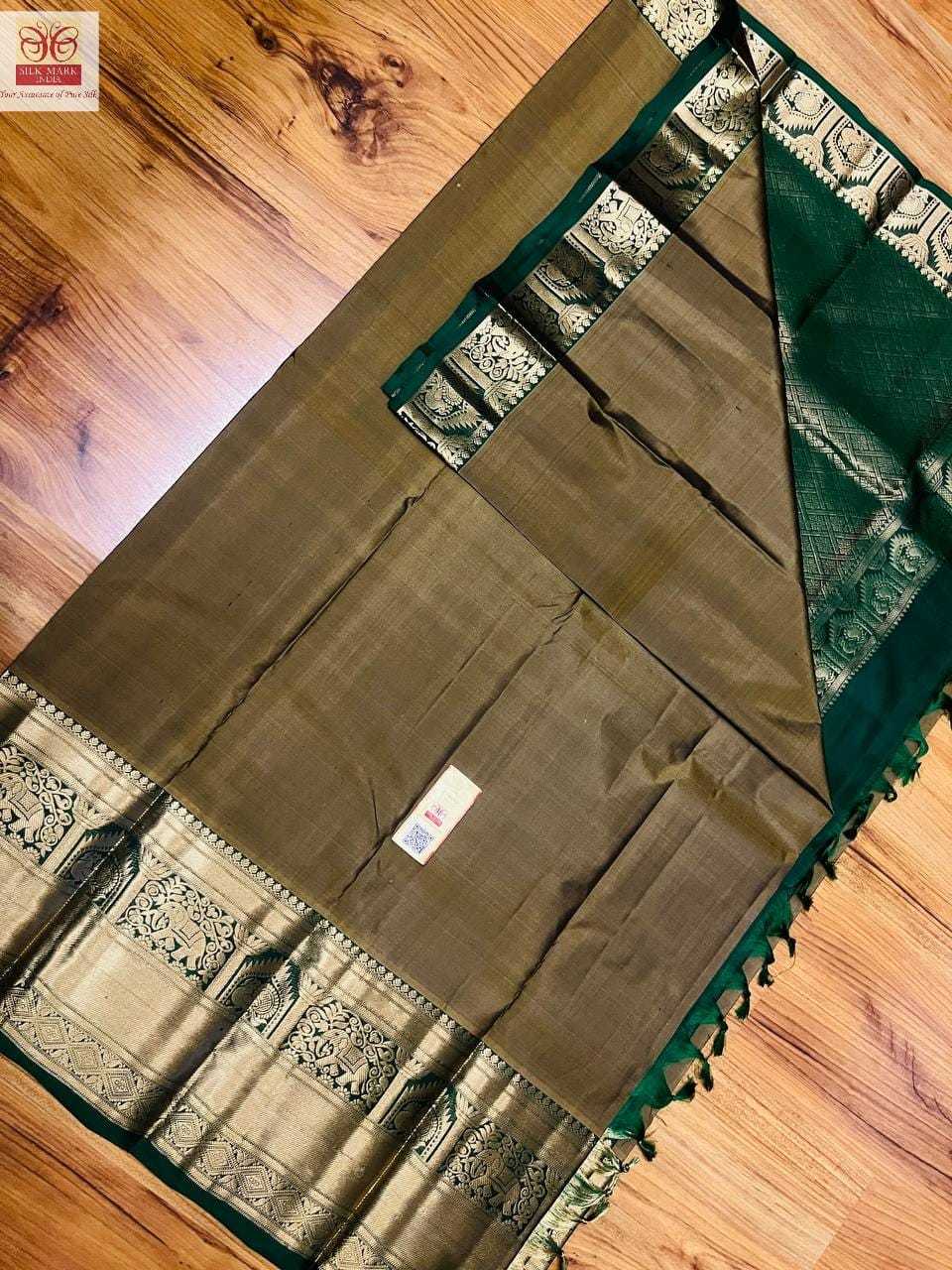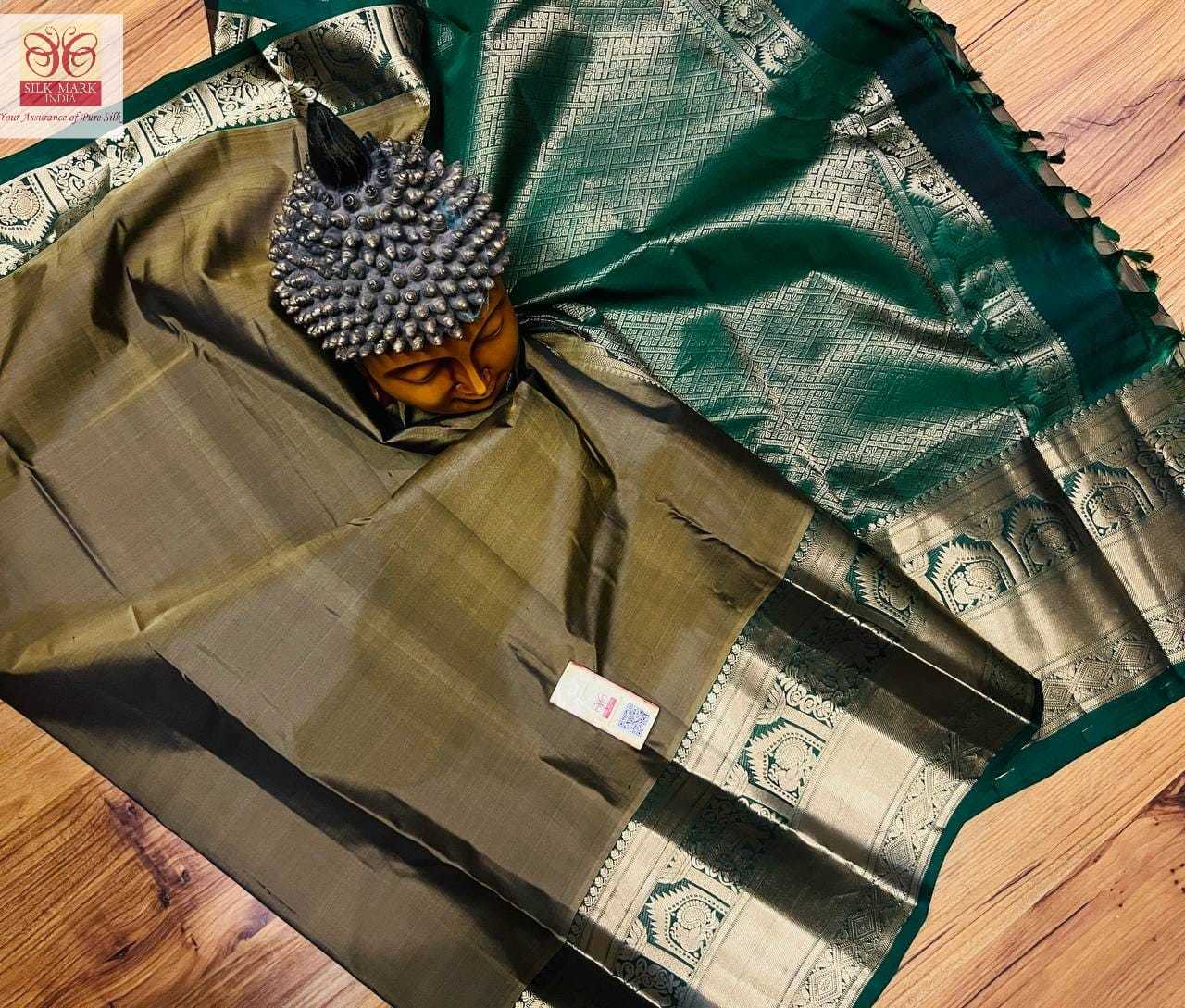 टिश्यूज़ साड़ी के साथ हरी शुद्ध कांचीपुरम सिल्क साड़ी