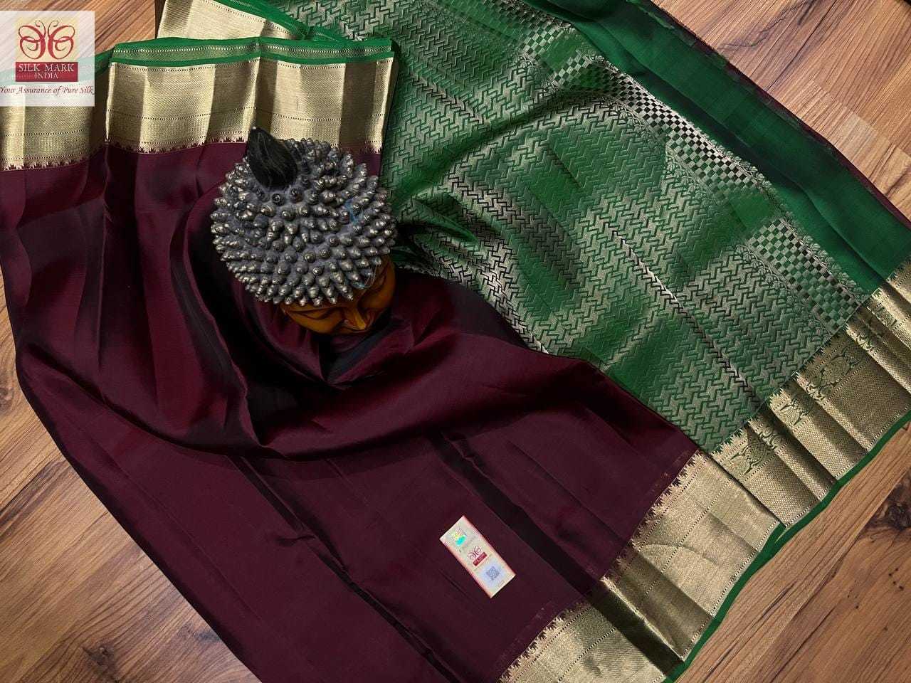 टिश्यूज़ बॉर्डर के साथ ट्रेडिशनल प्योर कांचीपुरम सिल्क