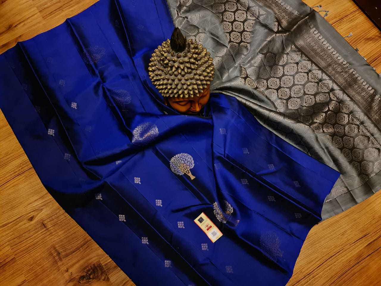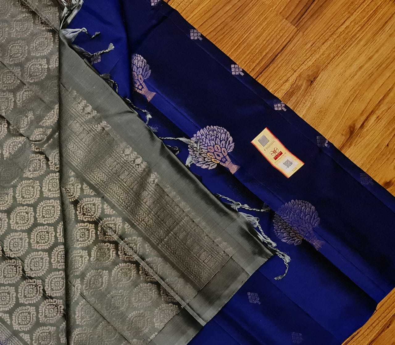नेवी ब्लू सिल्वर प्योर कांजीवरम फैंसी सिल्क के साथ