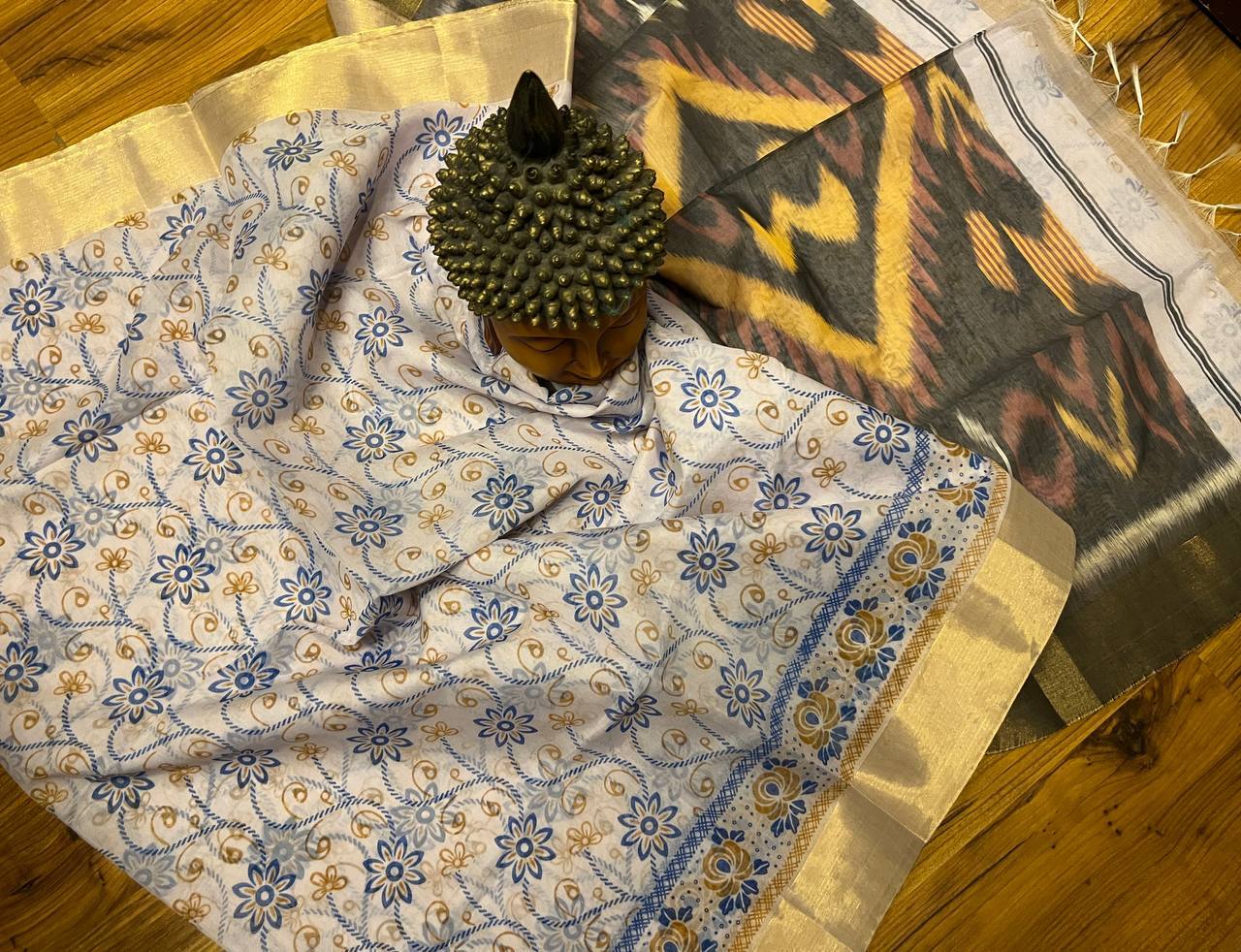 कॉटन प्योर कांजीवरम हैंडलूम लिनन सिल्क