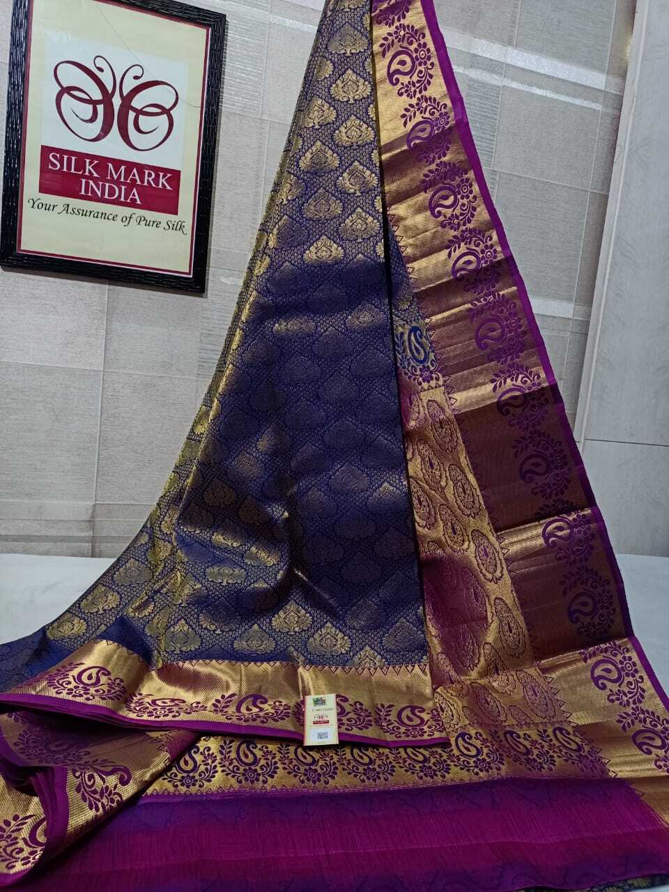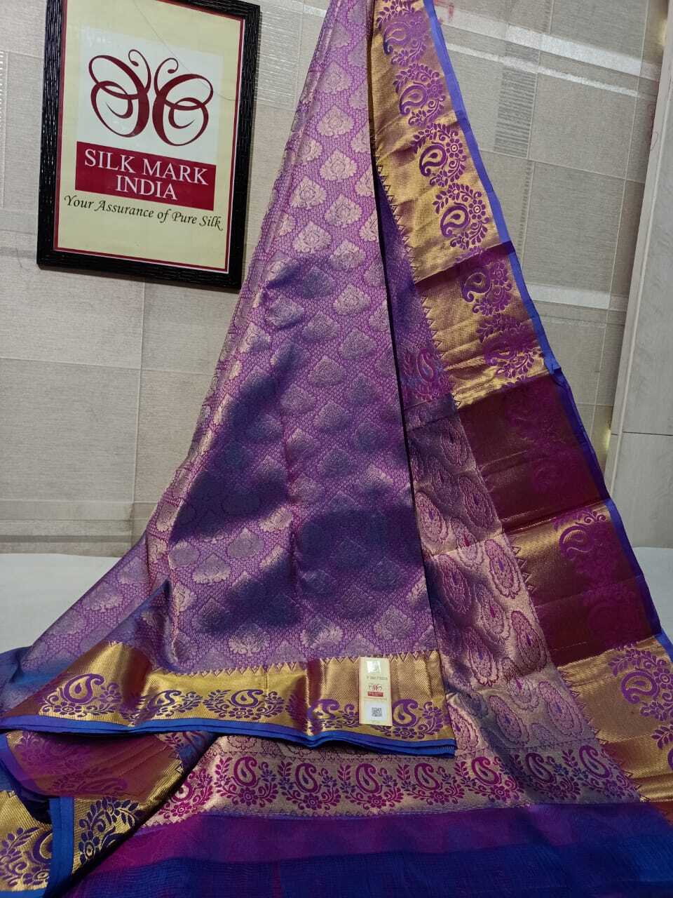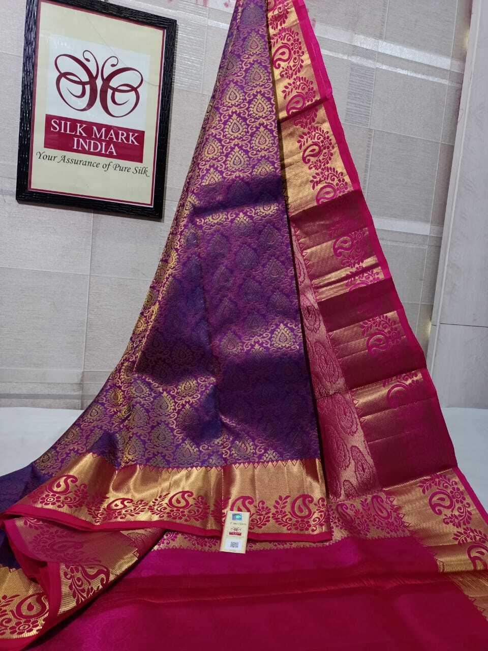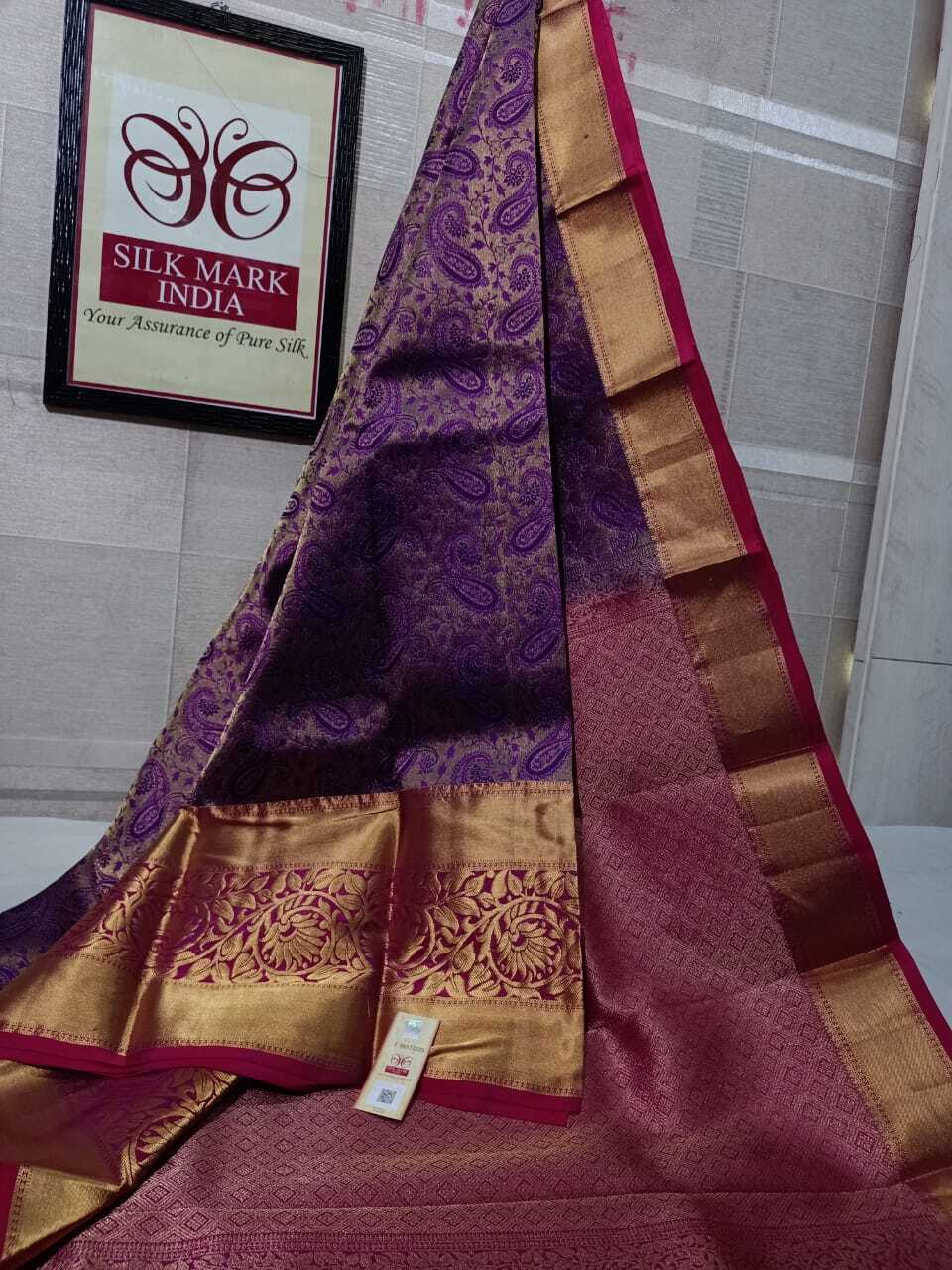 पर्पल डबल शेड प्योर कांजीवरम जरी वीविंग साड़ी