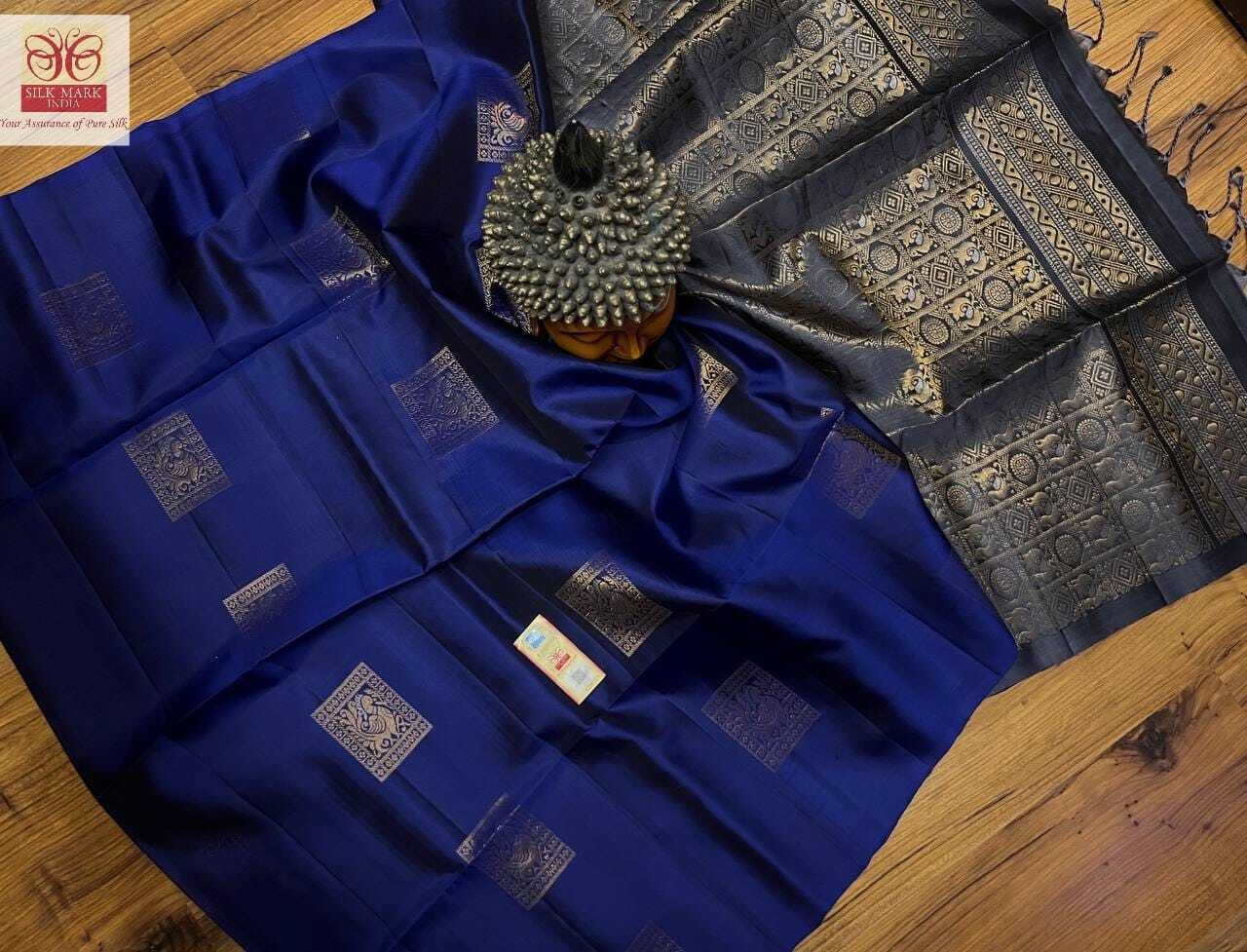 ब्लू विथ ग्रे प्योर कांजीवरम मीना बुड्डा वर्क साड़ी