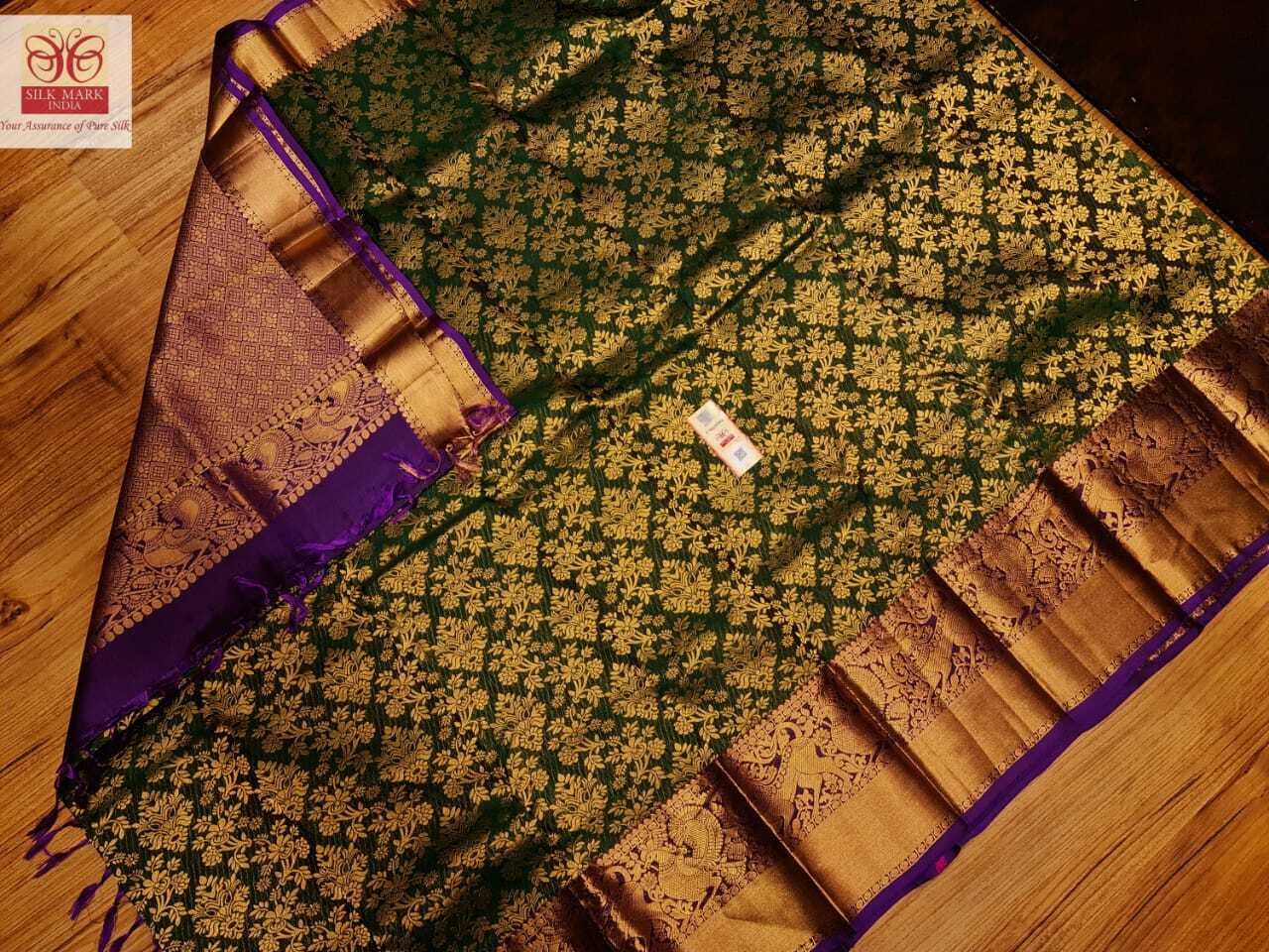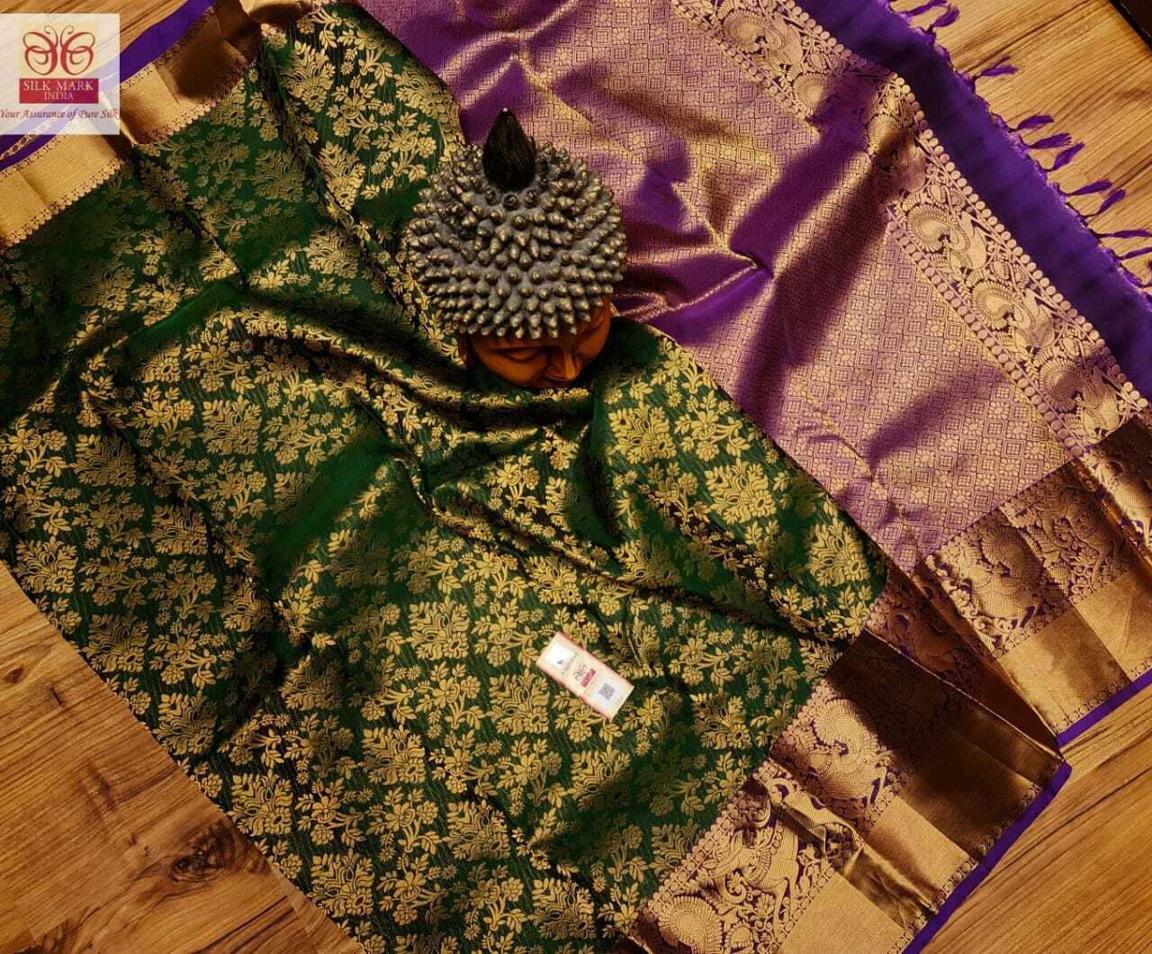 ग्रीन विथ पर्पल प्योर कांजीवरम सिल्क ब्राइडल वियर साड़ी