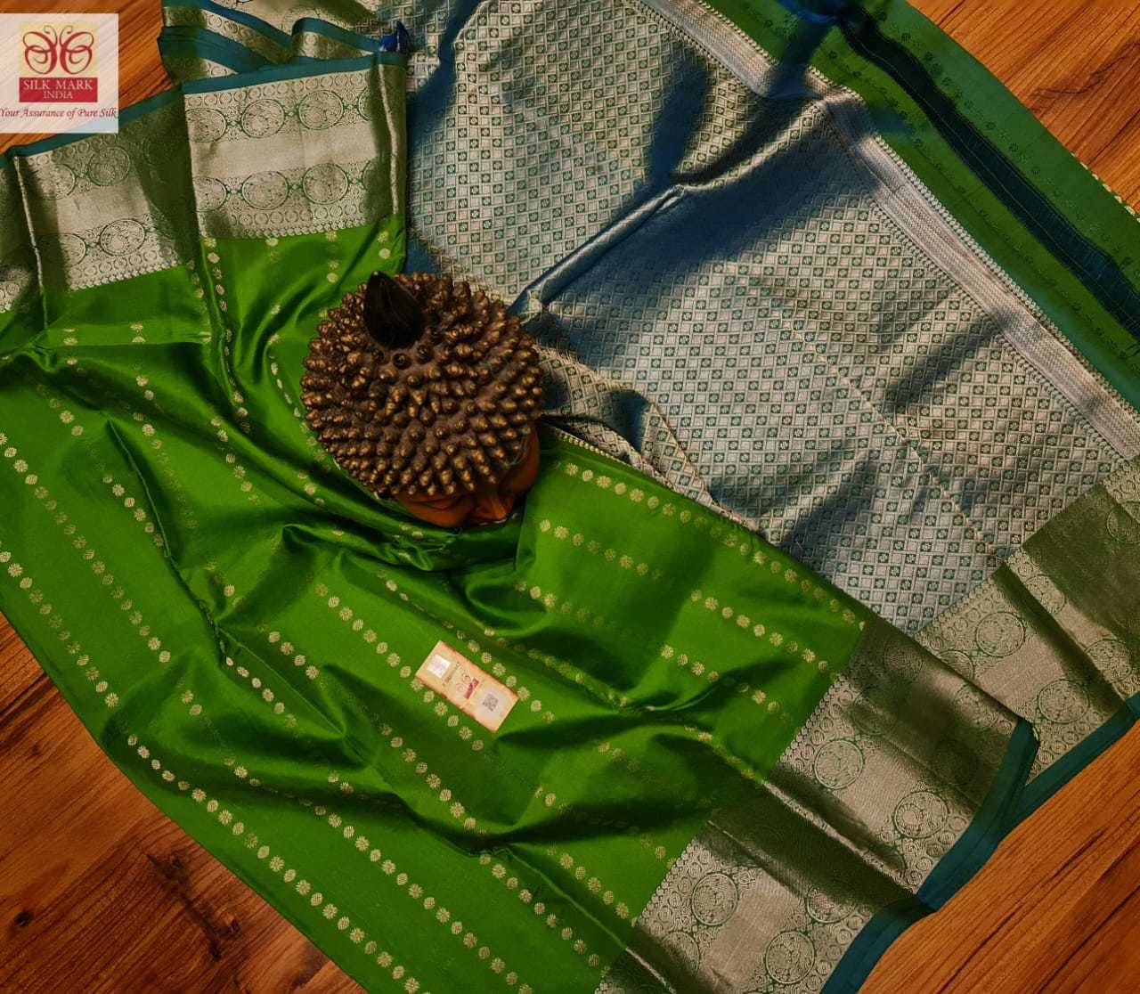 ग्रीन प्योर कांजीवरम सिल्क न्यू फैंसी जेरी बोडर