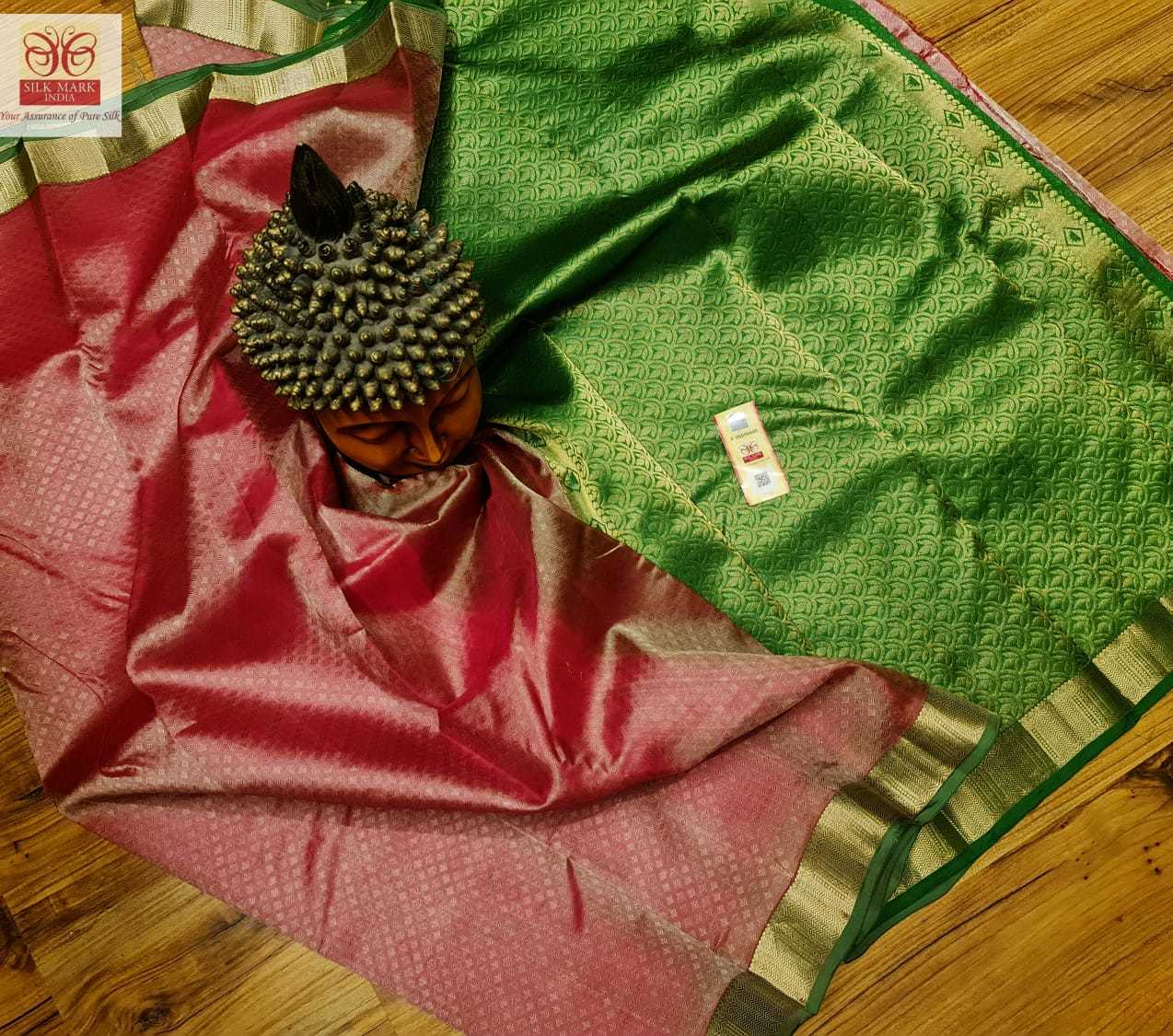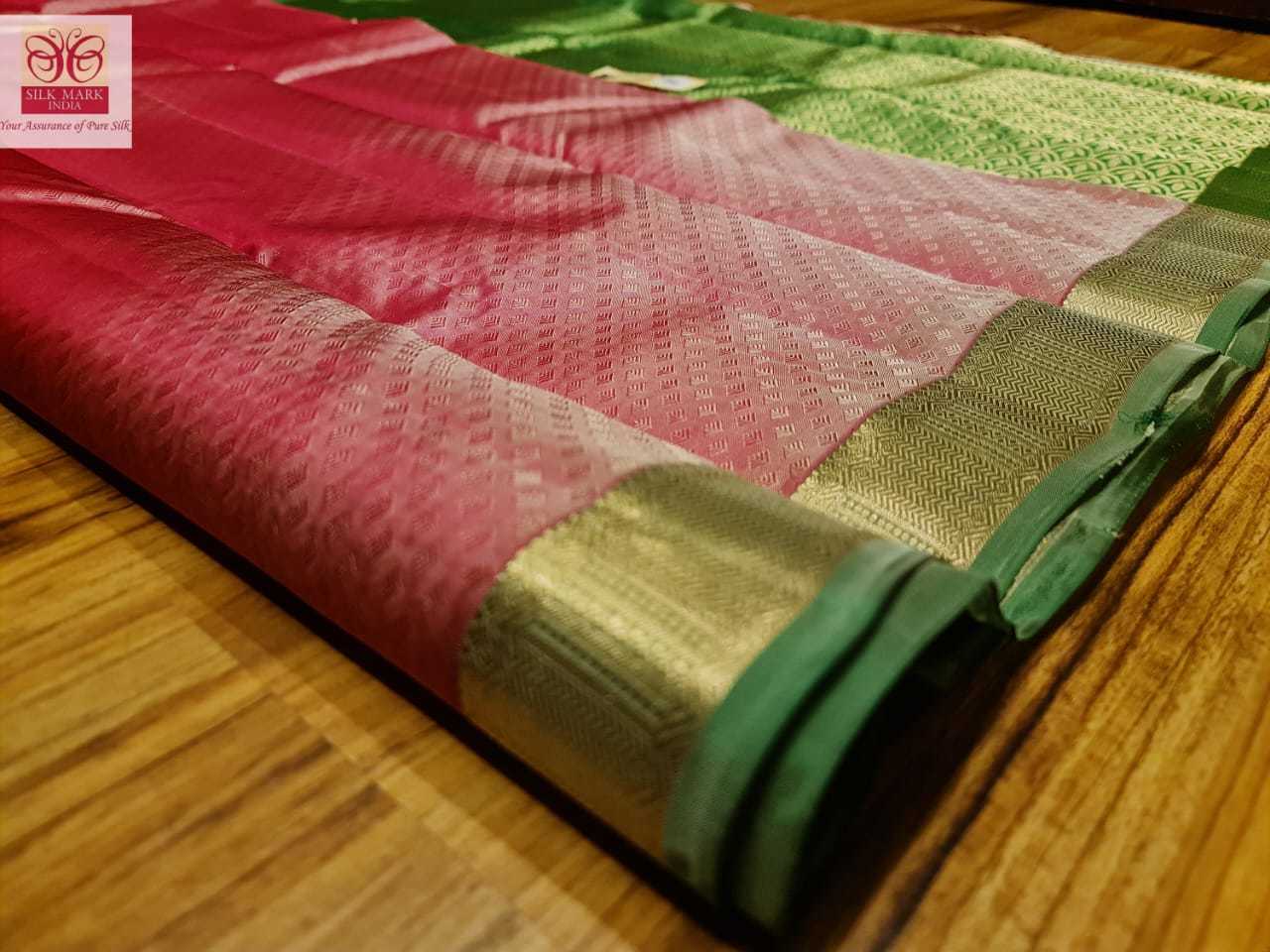 पिंक विथ ग्रीन प्योर कांजीवरम सिल्क रिच पुलु