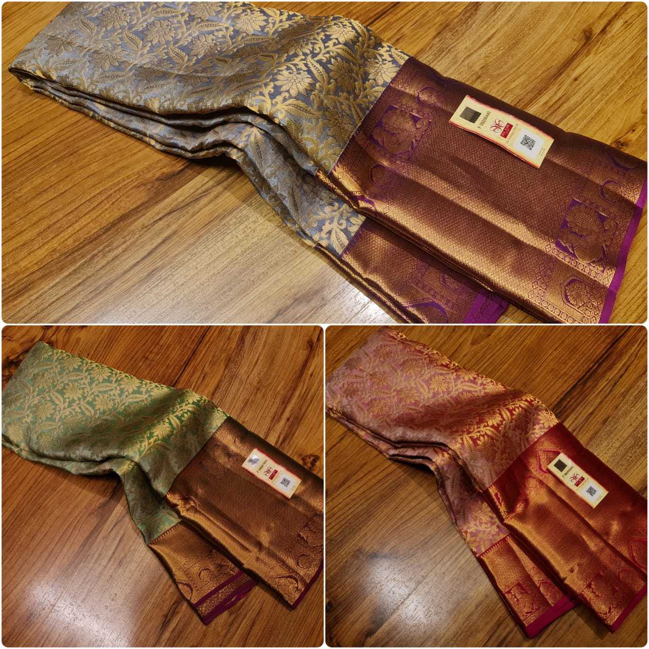 पिंक (गुलाबी) और गोल्डन प्योर कांजीवरम सिल्क साड़ी के साथ सिल्वर