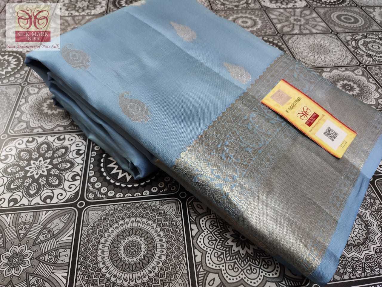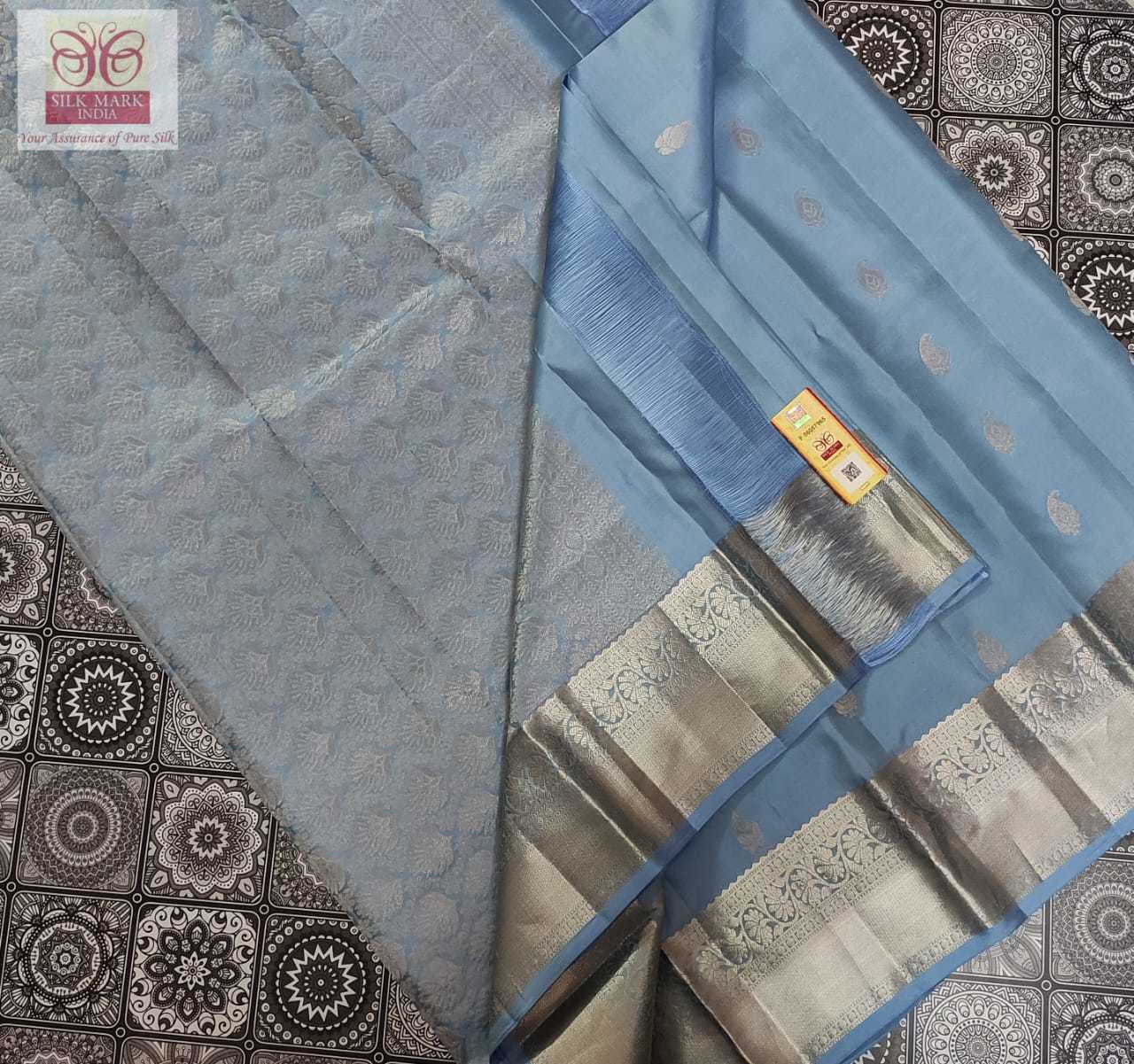 ग्रे गोल्ड प्योर कांजीवरम सिल्क टिश्यू साड़ी के साथ