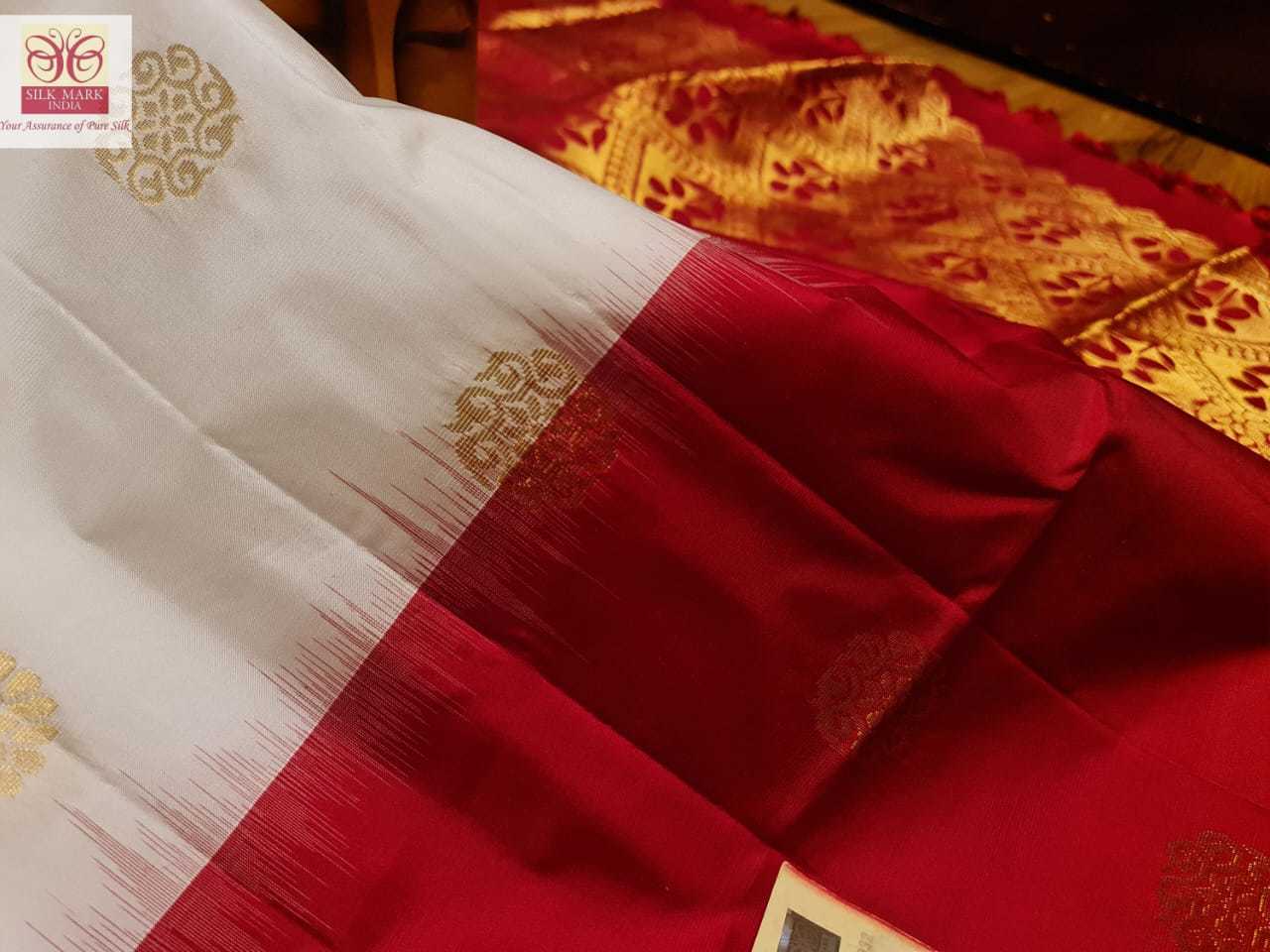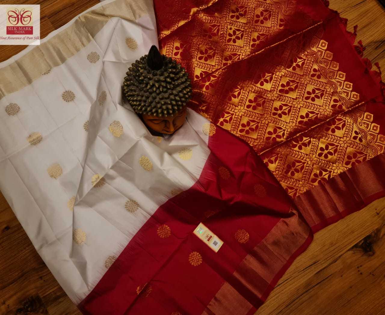 पिंक (गुलाबी) प्योर कांजीवरम सिल्क टर्निंग बॉर्डर के साथ सफ़ेद
