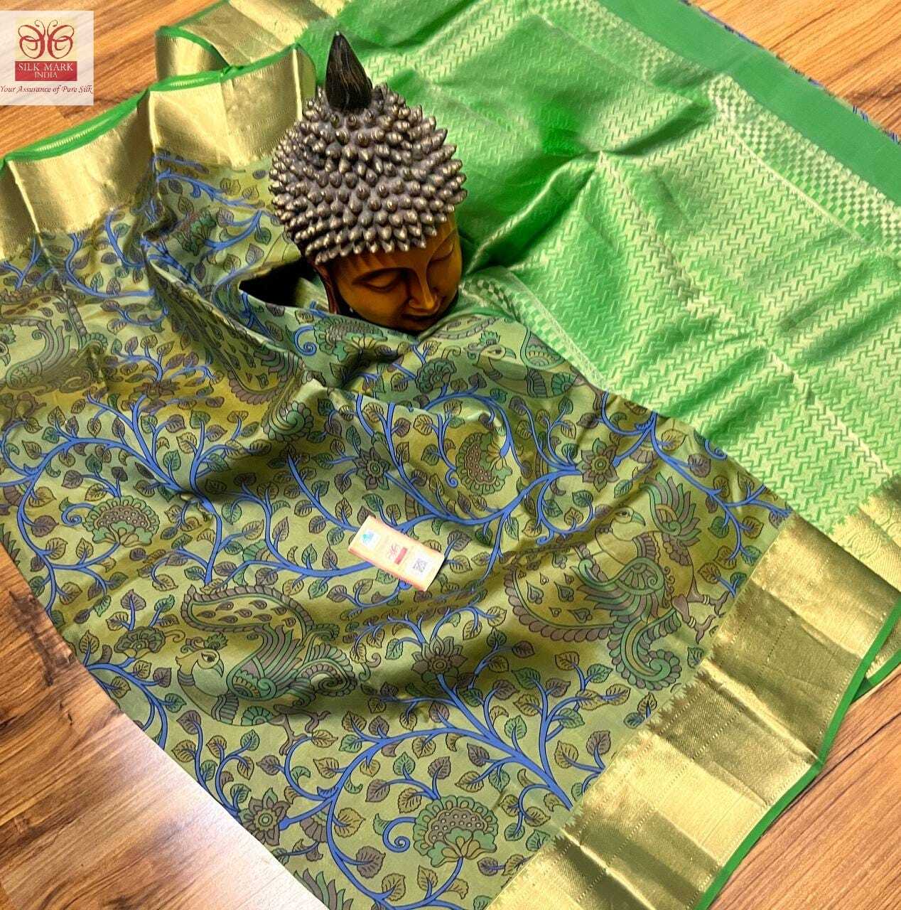 ग्रीन प्योर सिल्क साड़ी कलमकारी साड़ी