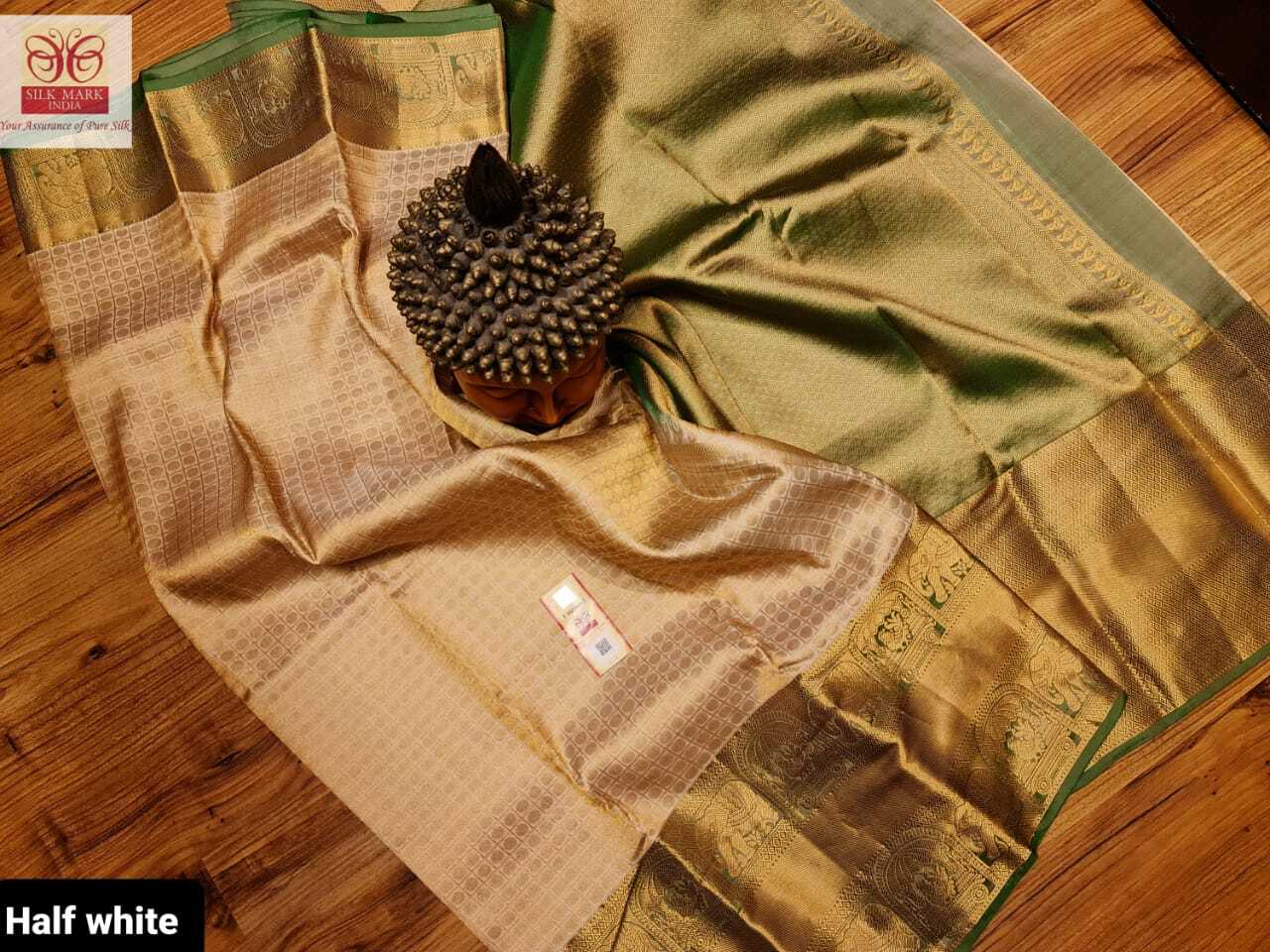 हाफ व्हाइट प्योर सिल्क साड़ी नई ब्राइडल वियर साड़ी