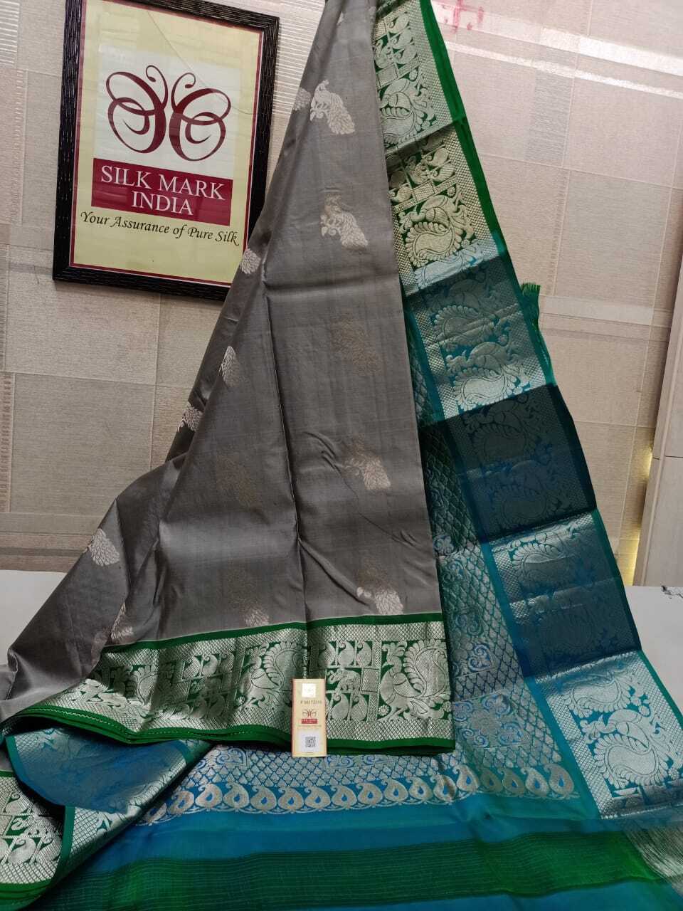 कांजीवरम सिल्क की ग्रे प्योर सिल्क साड़ी