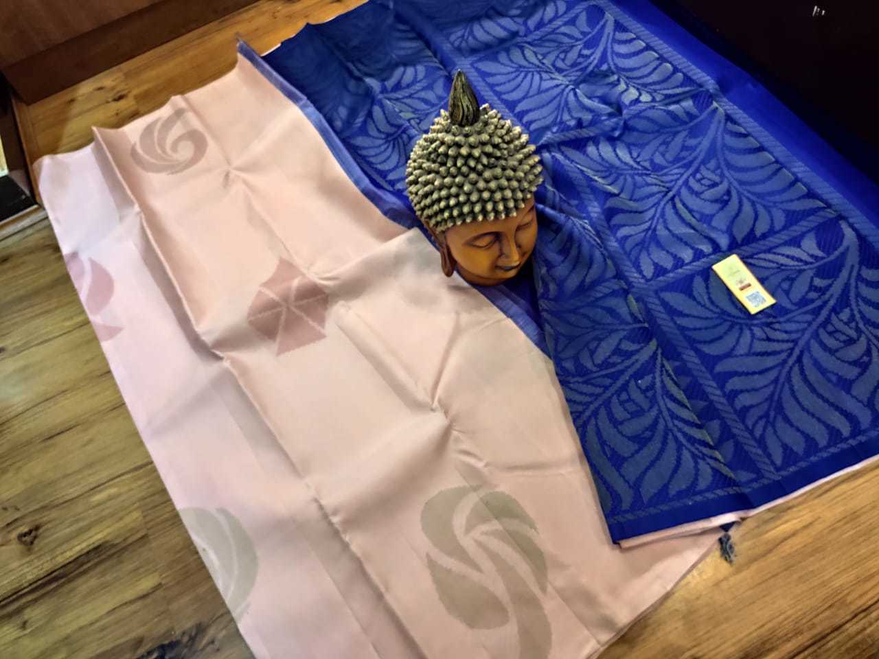 पार्टी वियर प्योर सिल्क बॉर्डर वाला हाफ व्हाइट विद ब्लू