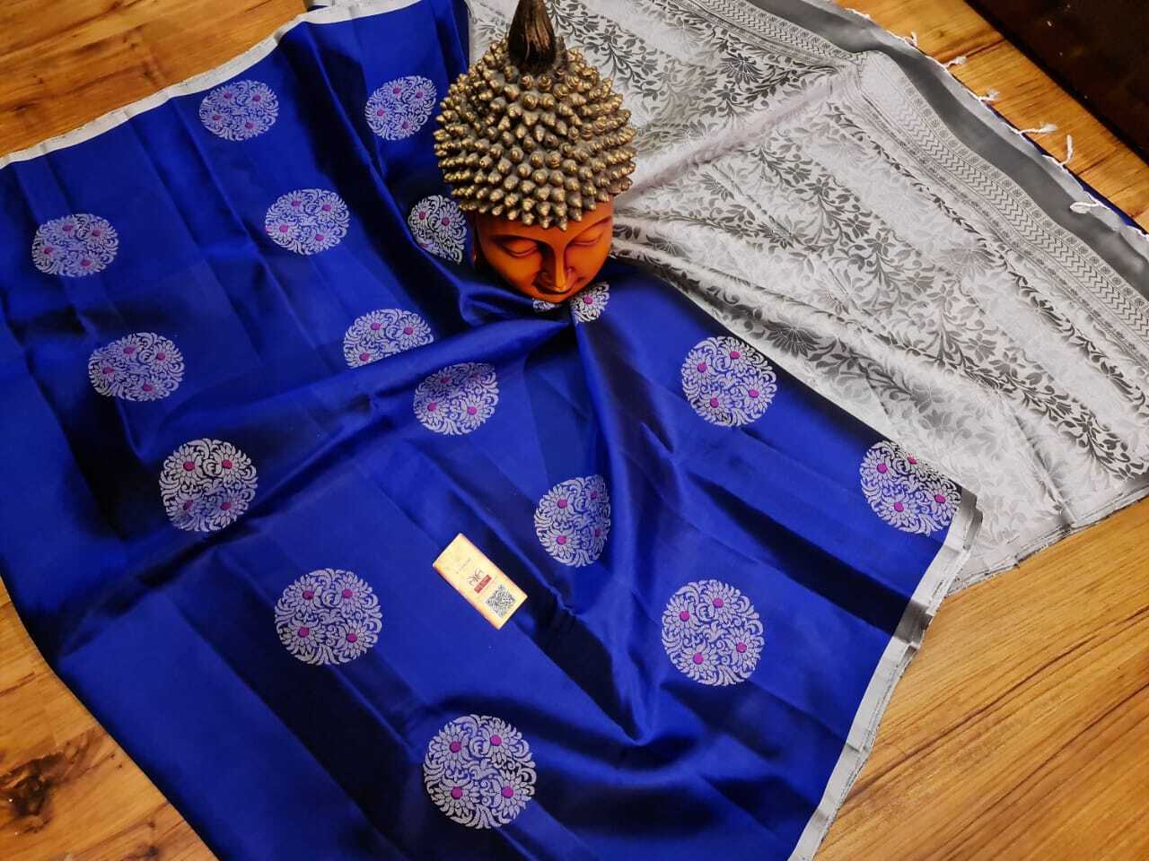 ब्लू प्योर सॉफ्ट सिल्क कांजीवरम हैंडवॉवन सिल्क