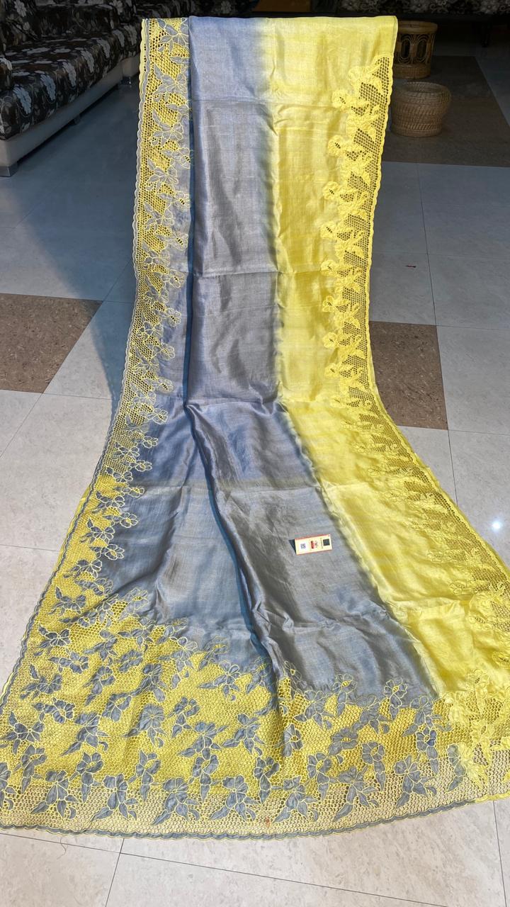 पार्टी वियर प्योर टसर सिल्क कट वर्क साड़ी.